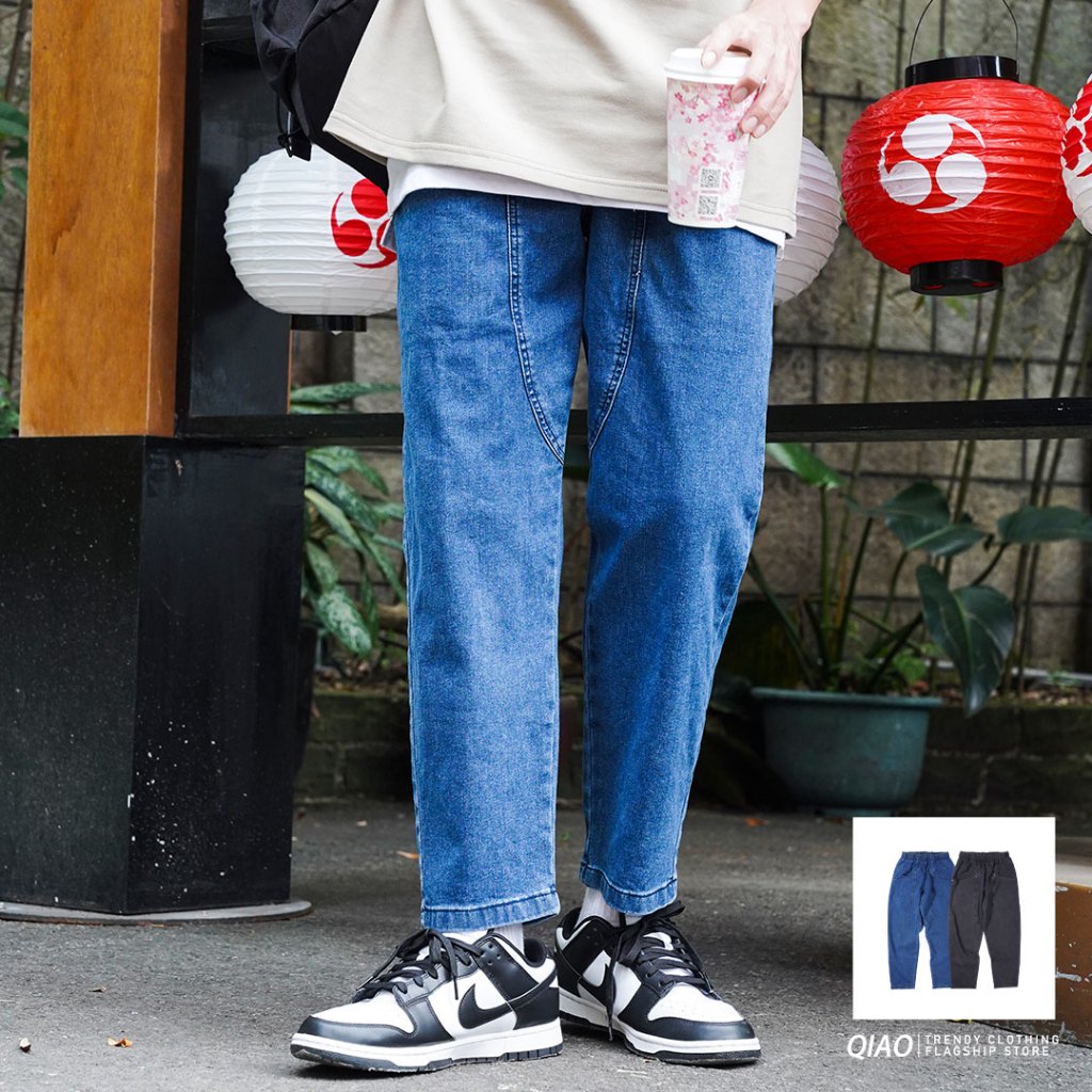【QIAO】 四季穿 原色丹寧 水洗 錐形褲 基本款 修身長褲 牛仔褲 上寬下窄 長褲 休閒褲 長褲男原生水洗藍(26~36腰適穿)|原生水洗黑(26~36腰適穿)QIAO 潮人服飾旗艦店