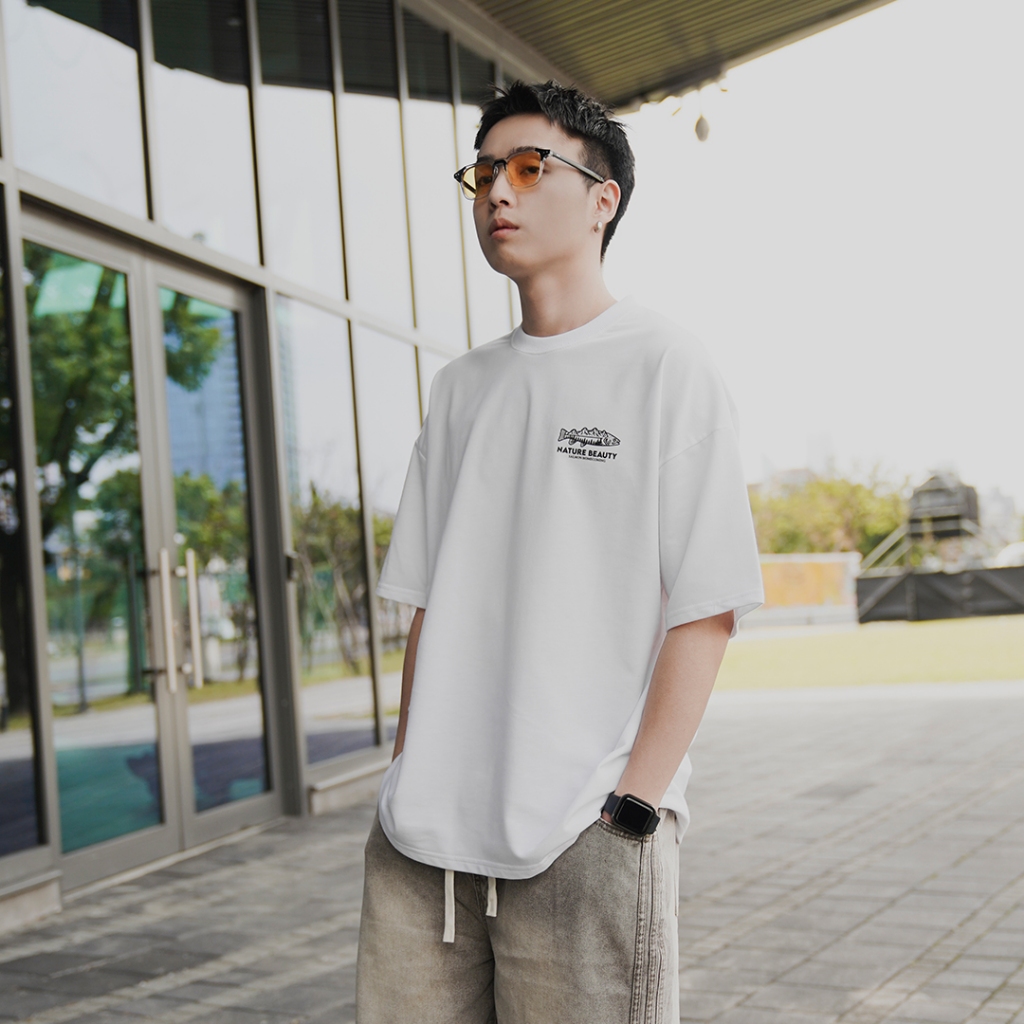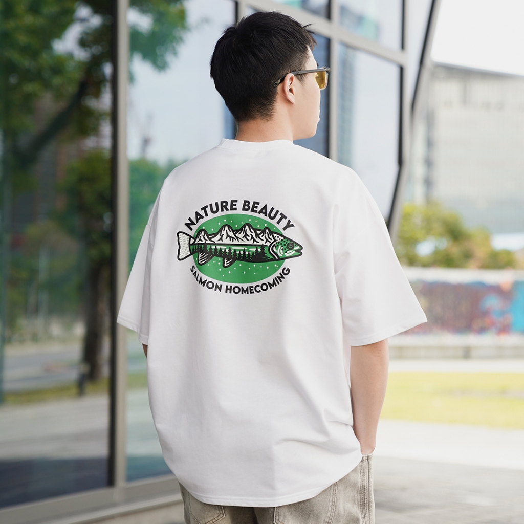 【QIAO】NATURE山脈鮭魚短T 細絨棉 落肩 短T 寬鬆T 情侶 穿搭 日系 短袖上衣 圓領上衣 蓋屁股上衣黑色,M|黑色,L|白色,M|白色,L|灰杏色,M|灰杏色,LT-ShirtsQIAO 潮人服飾旗艦店