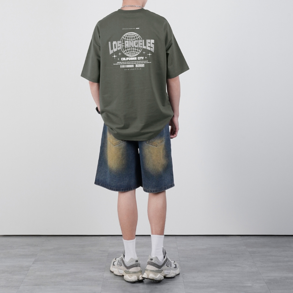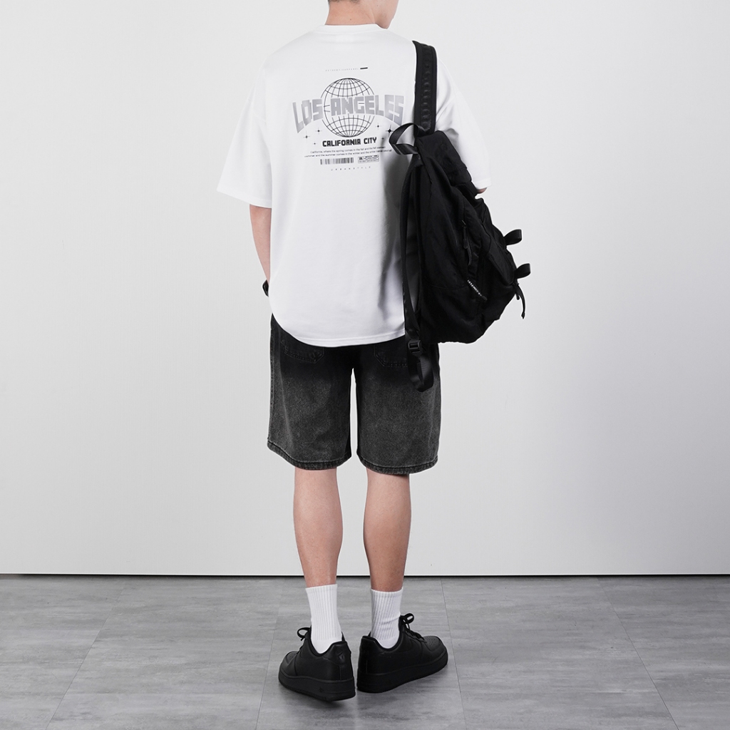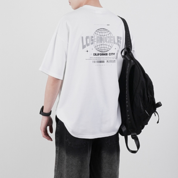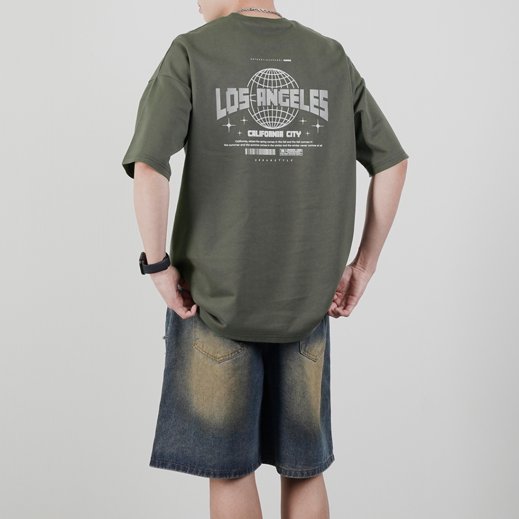 【QIAO】t-shirt 自帶閃耀 LOS ANGELES 反射光短T 細絨棉 落肩 短T 寬鬆T 情侶 穿搭 短袖黑色,M|黑色,L|深綠,M|深綠,L|白色,M|白色,LT-ShirtsQIAO 潮人服飾旗艦店