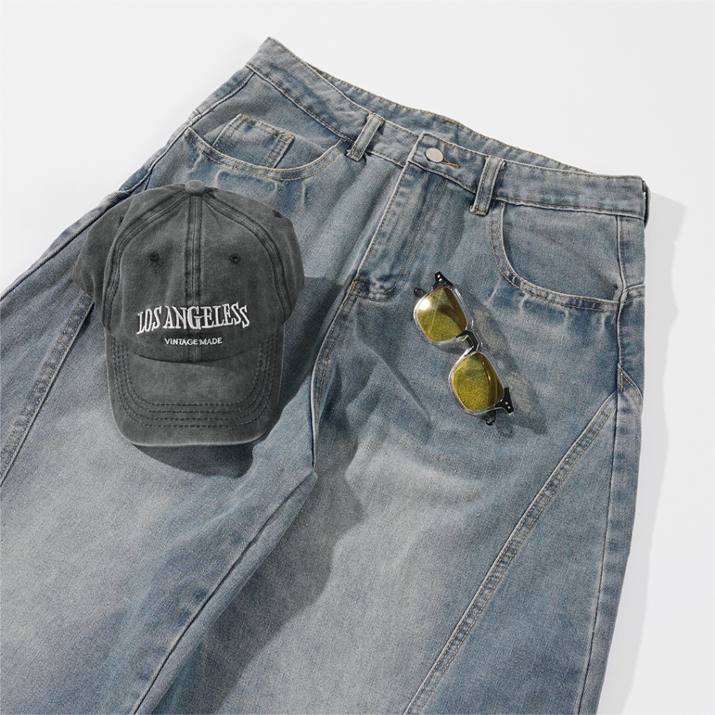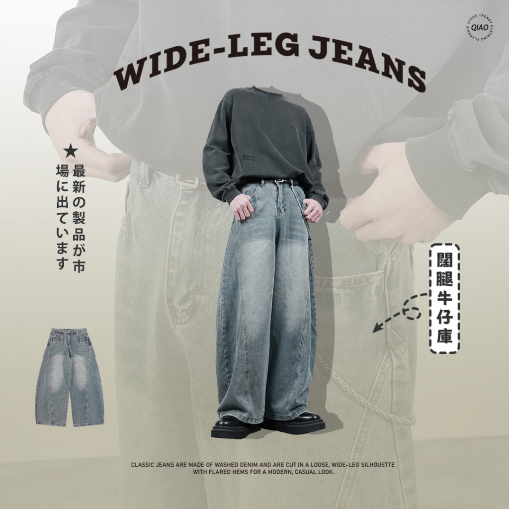 【QIAO】超闊 側剪裁牛仔寬褲 美式 水洗 Baggy Jeans 闊腿褲 彎刀褲 牛仔褲 工作褲 寬褲男M|L|XL|XXLQIAO 潮人服飾旗艦店