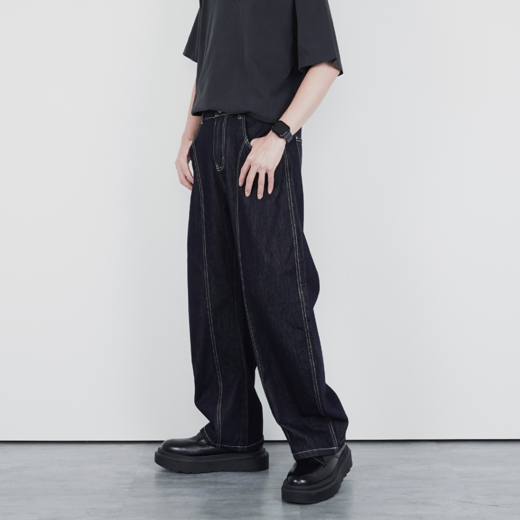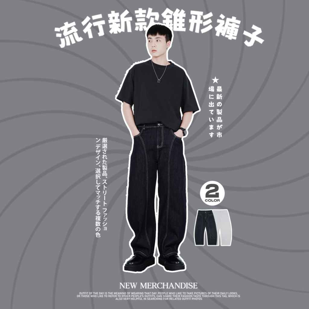 【QIAO】車線 維形褲 牛仔褲 長褲 寬褲 褲子 彎刀褲 牛仔寬褲 男生褲子 男長褲 男生長褲 長褲男 寬鬆長褲深藍(很深),M|深藍(很深),L|深藍(很深),XL|深藍(很深),2XL|白,M|白,L|白,XL|白,2XLQIAO 潮人服飾旗艦店