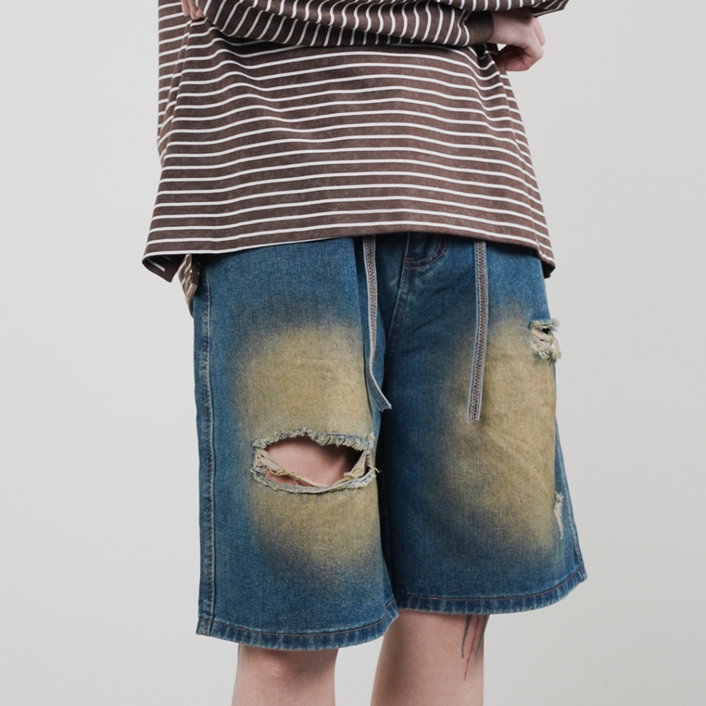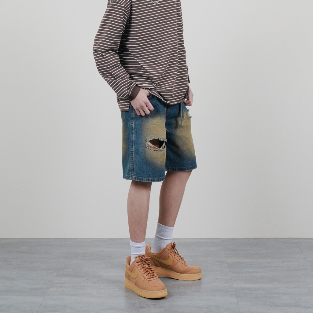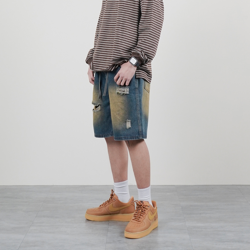 【QIAO】shorts 洗舊 黃泥 牛仔短褲 工作褲 休閒短褲 短褲 牛仔褲 男生短褲 牛仔工作褲 工裝 古著M|L|XL|XXLQIAO 潮人服飾旗艦店