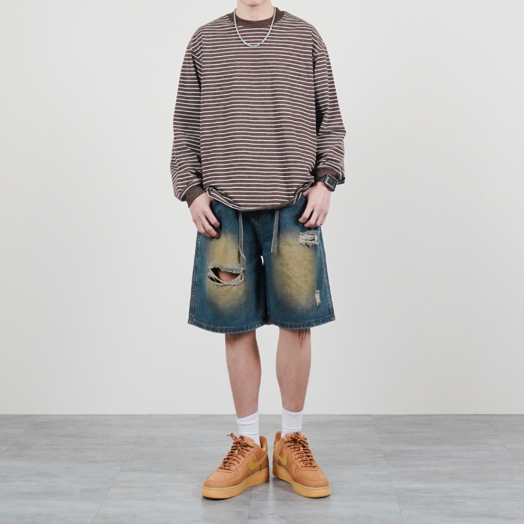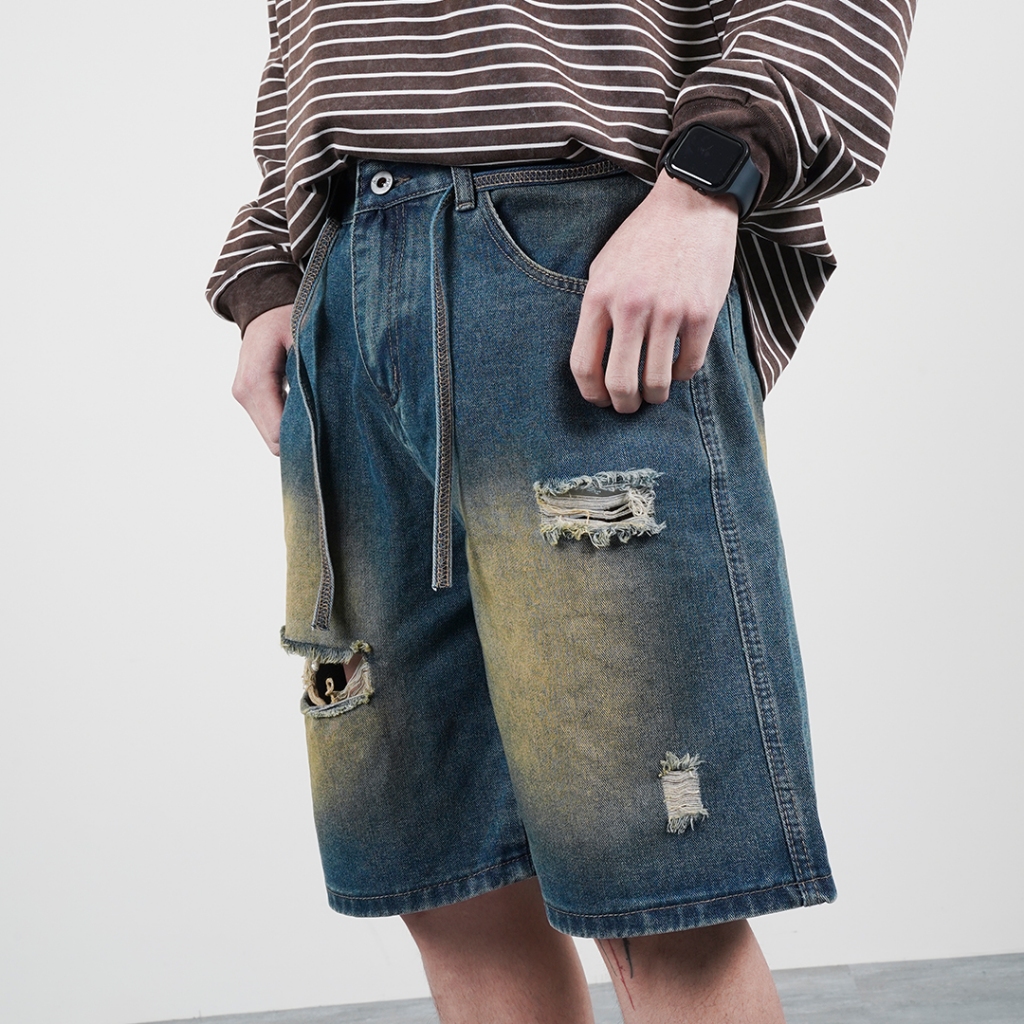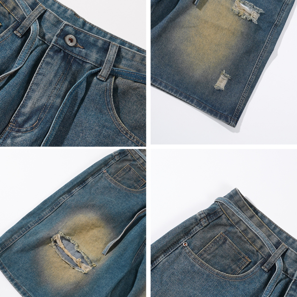 【QIAO】shorts 洗舊 黃泥 牛仔短褲 工作褲 休閒短褲 短褲 牛仔褲 男生短褲 牛仔工作褲 工裝 古著M|L|XL|XXLQIAO 潮人服飾旗艦店