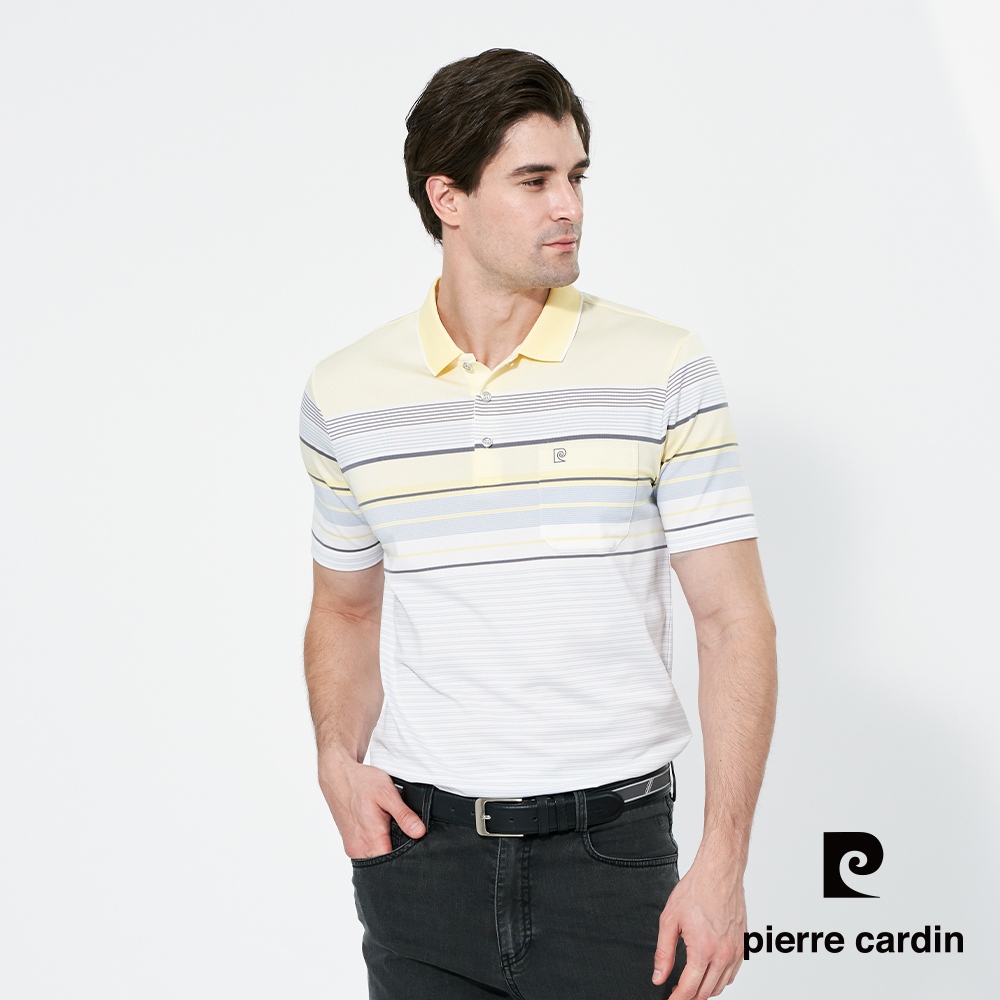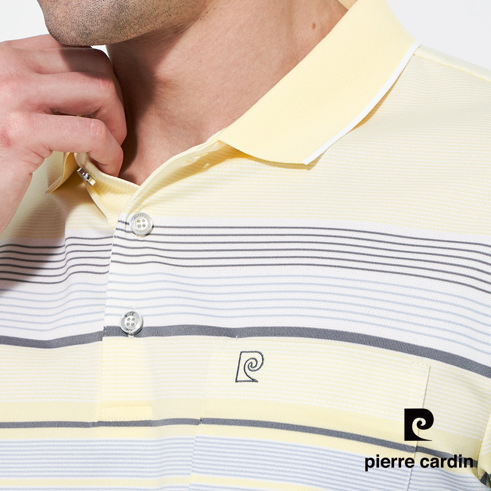 【pierre cardin 皮爾卡登】男款 吸濕排汗微彈性TOP橫條短袖polo衫-黃色 (5257294-52)L|XL|3L|MPolo ShirtsPierre Cardin 皮爾卡登 【官方】休閒服飾