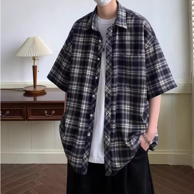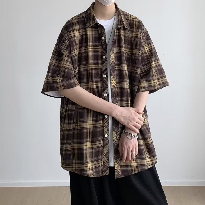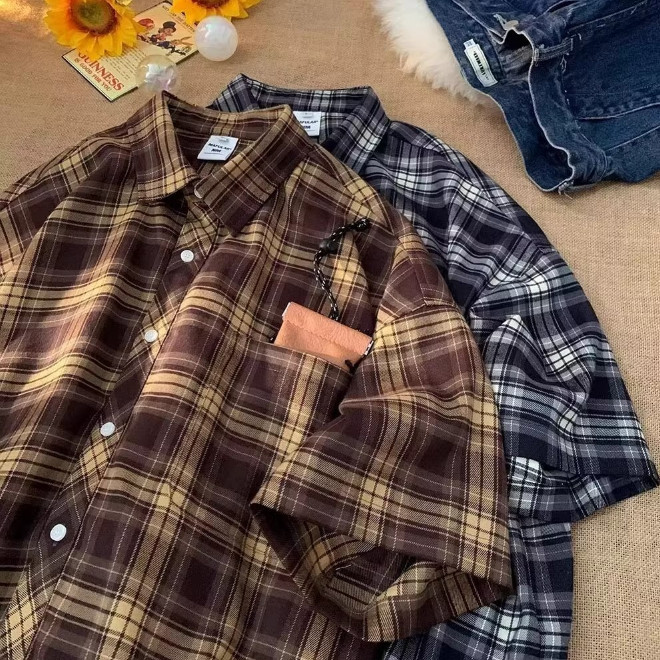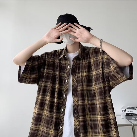 【M世代】短袖襯衫 韓版潮流寬鬆 休閒百搭 日系街頭潮流 情侶裝襯衫 男生襯衫 格子襯衫 寬鬆襯衫 ASZV65棕色,M|棕色,L|棕色,XL|棕色,2XL|藍色,M|藍色,L|藍色,XL|藍色,2XLShirtsM世代官方