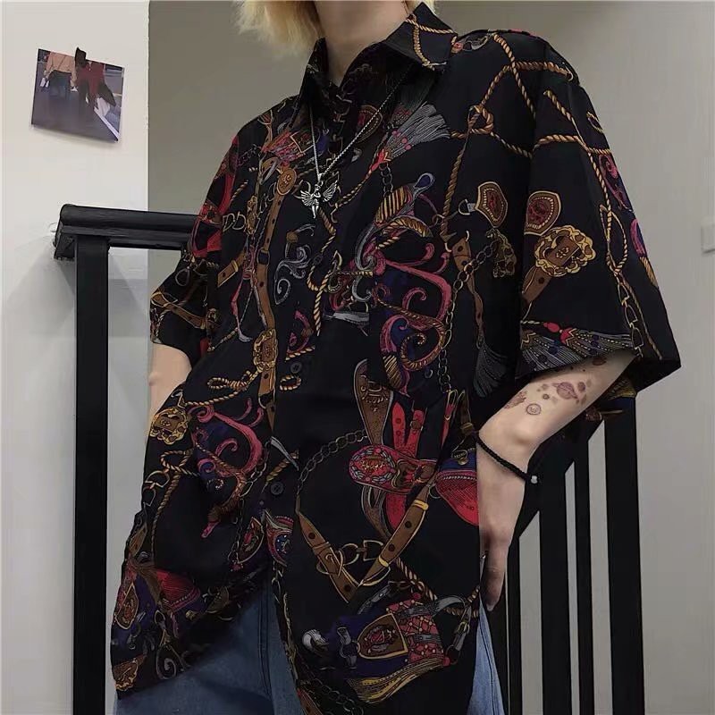 【M世代】襯衫 花襯衫 夏季新款印花襯衫 度假風必備短袖花襯衫 ins超火的男女情侶襯衫 男生衣著(CRSJD112)卡其,M|卡其,L|卡其,XL|卡其,2XL|卡其,3XL|黑色,M|黑色,L|黑色,XL|黑色,2XL|黑色,3XLShirtsM世代官方