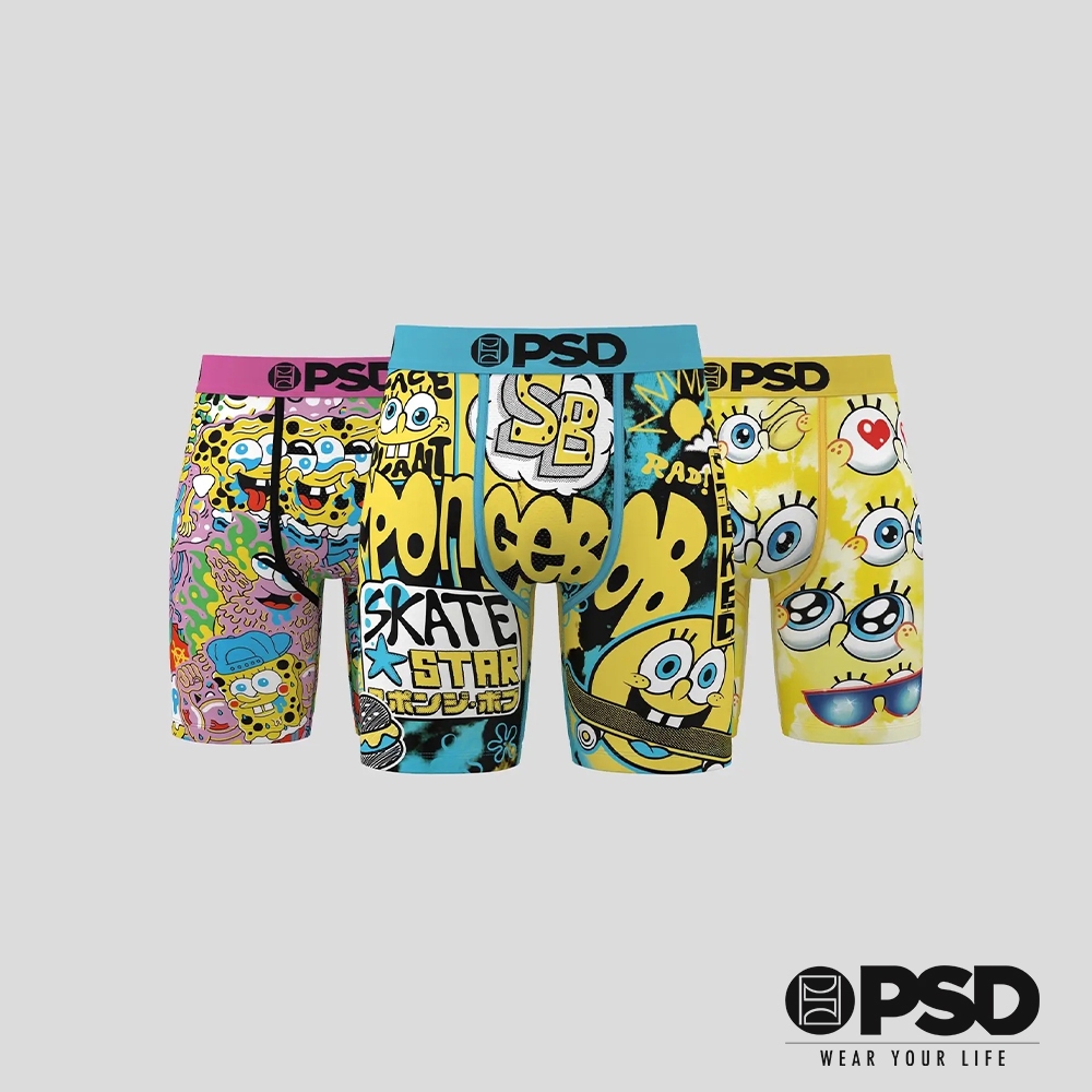 【PSD Underwear 官方旗艦店】3件組- 平口四角褲-海綿寶寶嘻哈-藍色S|M|L|XLUnderwearPSD Underwear 官方旗艦店
