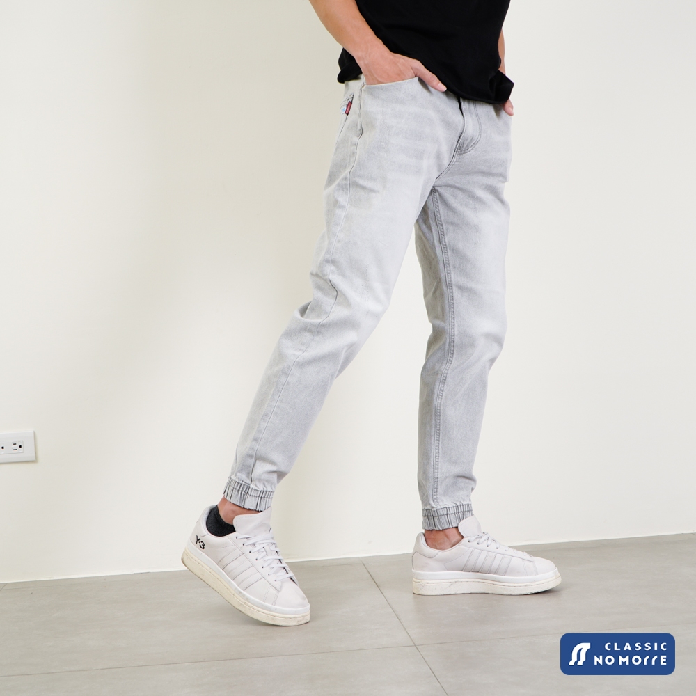 【NoMorre】水泥灰牛仔束口褲 牛仔縮口褲 伸縮腰頭 褲襠拉鍊 牛仔褲男 重磅水泥灰 M-2L 台灣現貨 #5702M (28腰)|L (30腰)|XL (32腰)|2L (34腰)JoggersNoMorre 台灣現貨 牛仔/休閒/工作褲