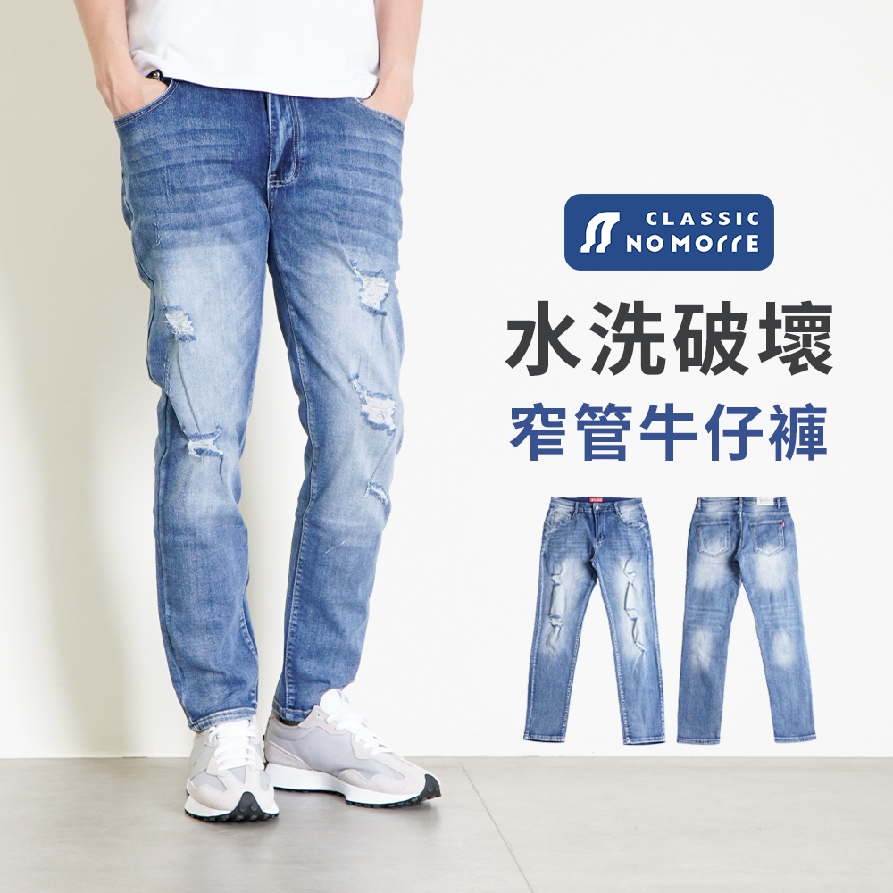 【NoMorre】牛仔褲 窄管牛仔褲 水洗破壞彈力牛仔布料 牛仔褲男 長褲男 牛仔長褲 台灣現貨 M-3L #3166M (28腰)|L (30腰)|XL (32腰)|2L (34腰)|3L (36腰)NoMorre 台灣現貨 牛仔/休閒/工作褲