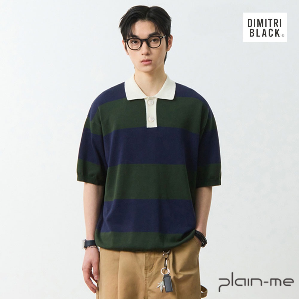plain-me Dimitriblack [條紋橄欖球衫] 短袖 上衣 衫 休閒上衣 條紋 [DMB3601-251]GREEN*NAVY,2|GREEN*NAVY,3|SKYBLUE*CREAM,2|SKYBLUE*CREAM,3Polo Shirtsplain-me 官方旗艦店