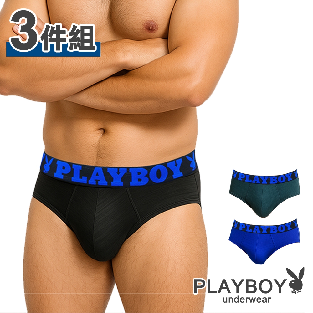 PLAYBOY|緞彩紋透氣彈力三角內褲|3件組M|L|XL|XXLUnderwearPLAYBOY_英殷國際