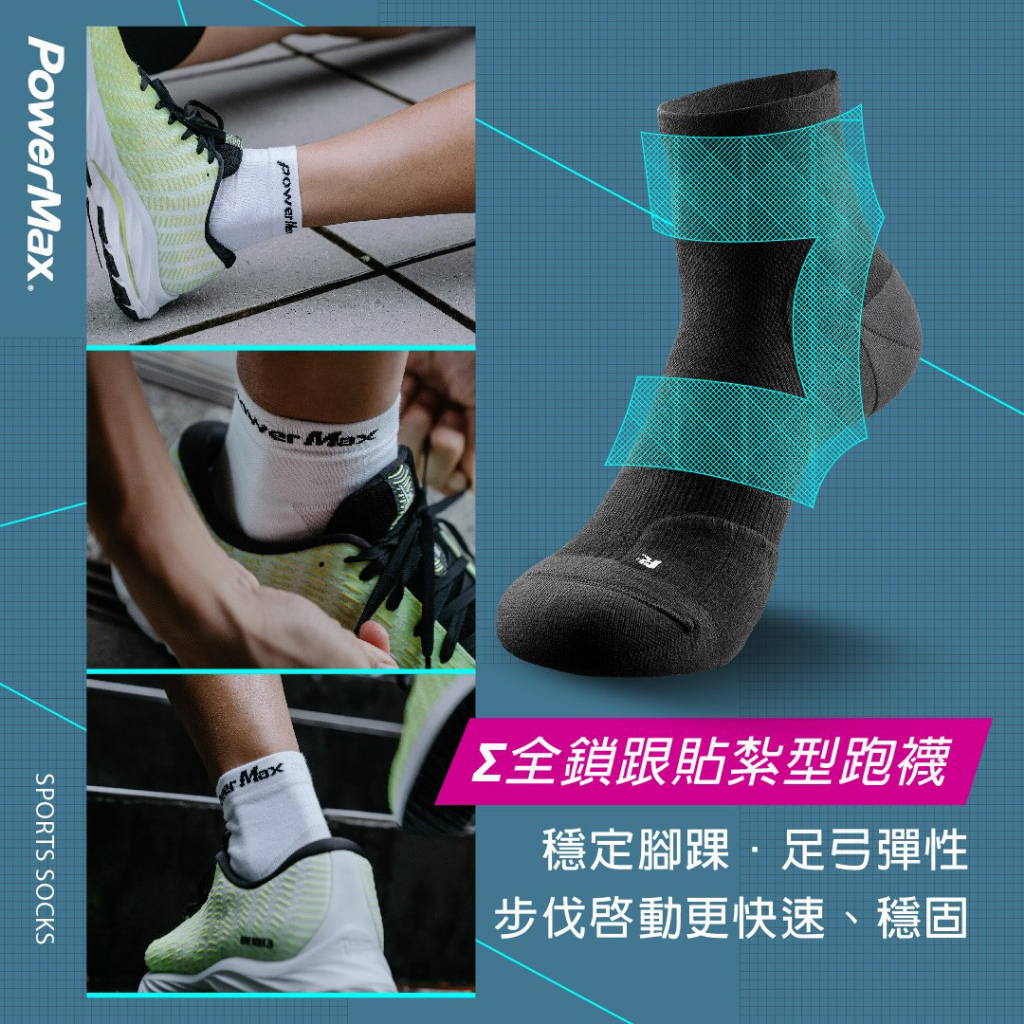 【PowerMax給力貼】Σ全鎖跟貼紮型護踝襪-科技黑|肌貼襪、馬拉松襪、跑步襪、運動襪、壓力襪|腳踝防護|台灣製造M|L|XL|SPowerMax給力貼