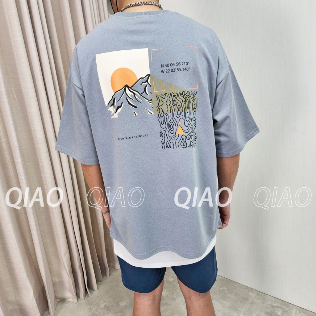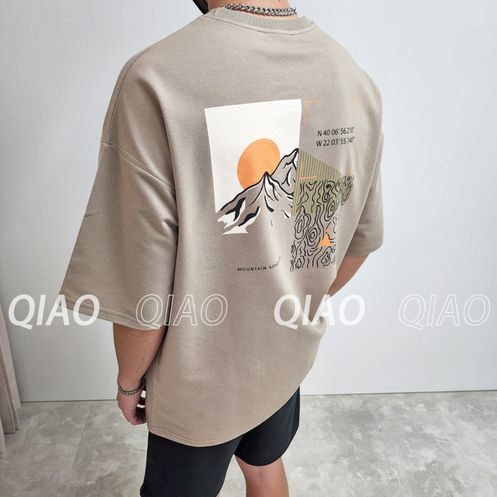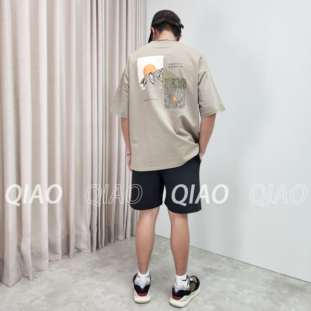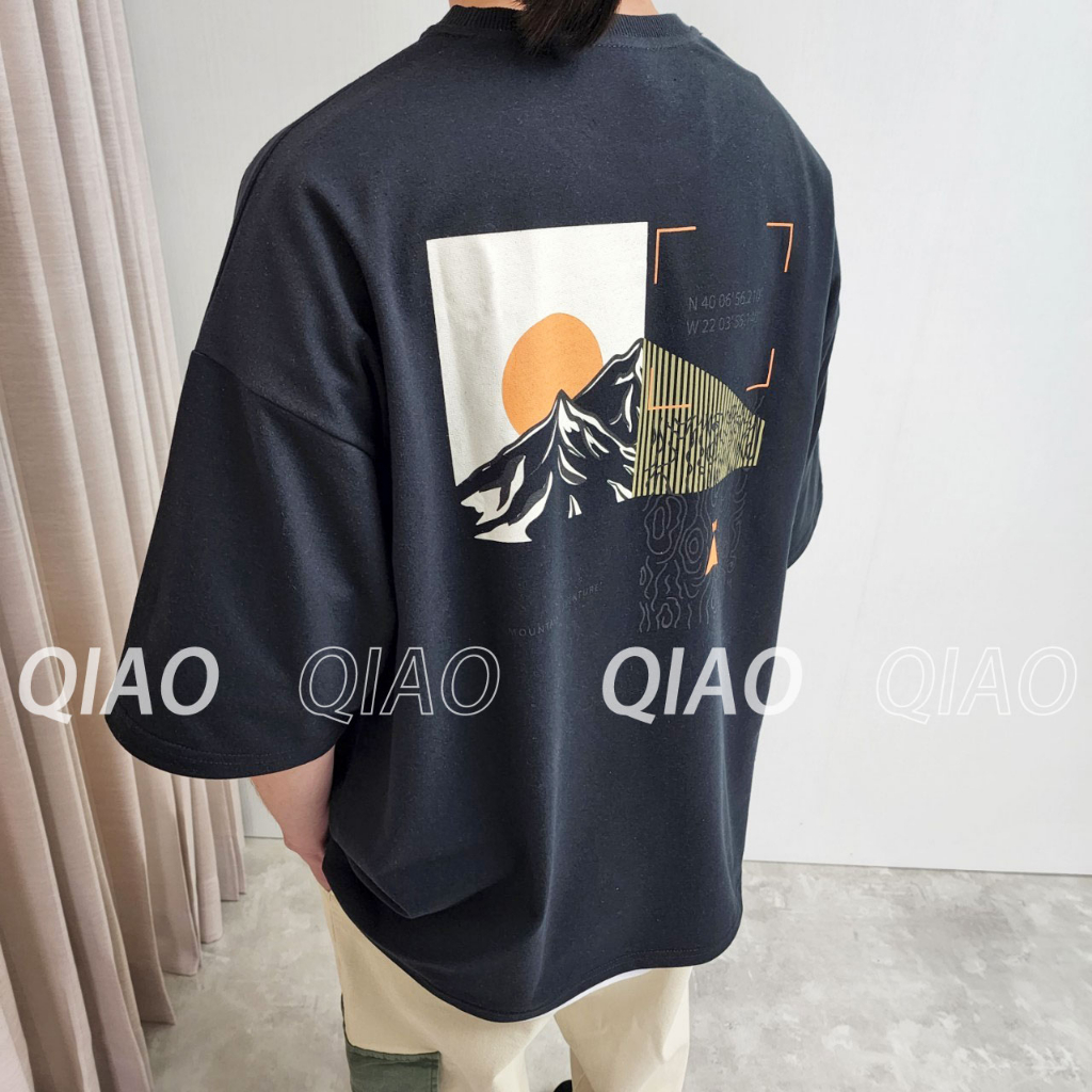 QIAO 韓國新貨 超日本 和風 手繪 落肩 寬鬆 休閒 日系 穿搭 上衣 短T 短袖 男生T恤 短袖T恤 男短T大地色,M|大地色,L|黑色,M|黑色,L|淺灰藍色,M|淺灰藍色,LT-ShirtsQIAO 潮人服飾旗艦店