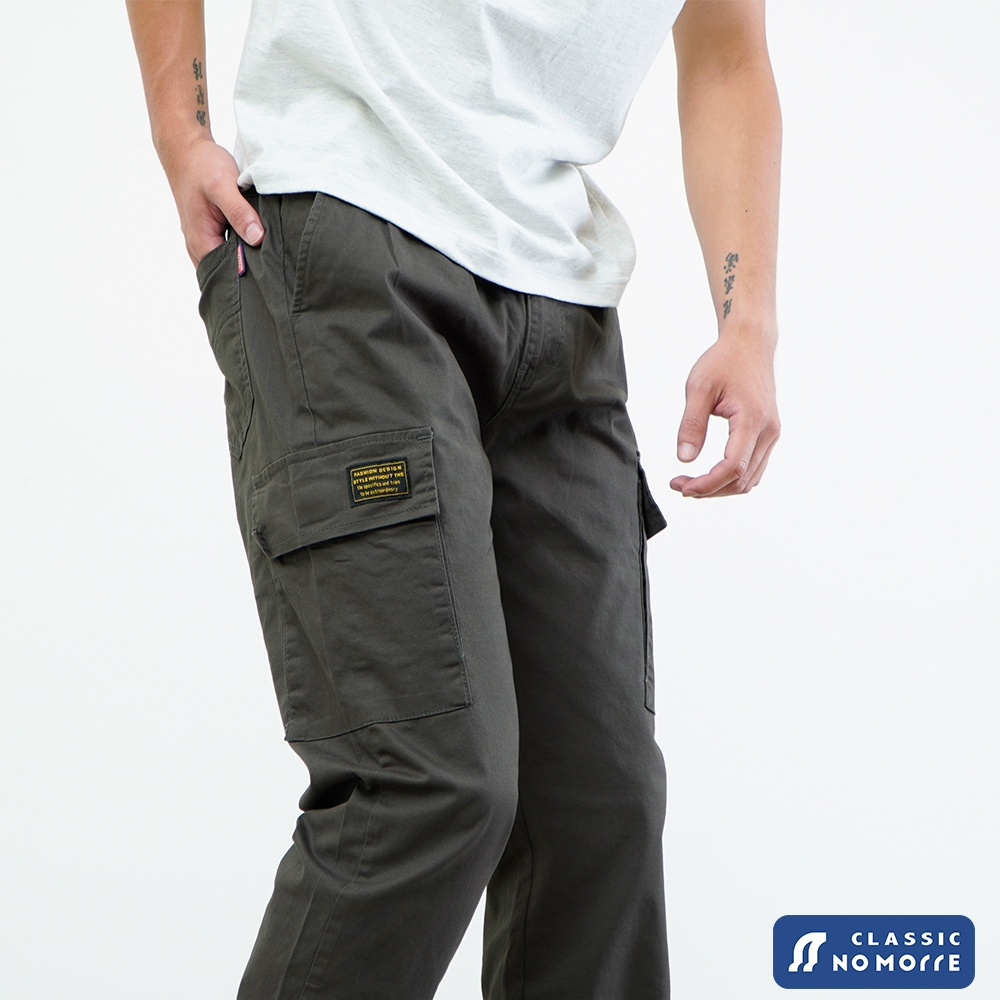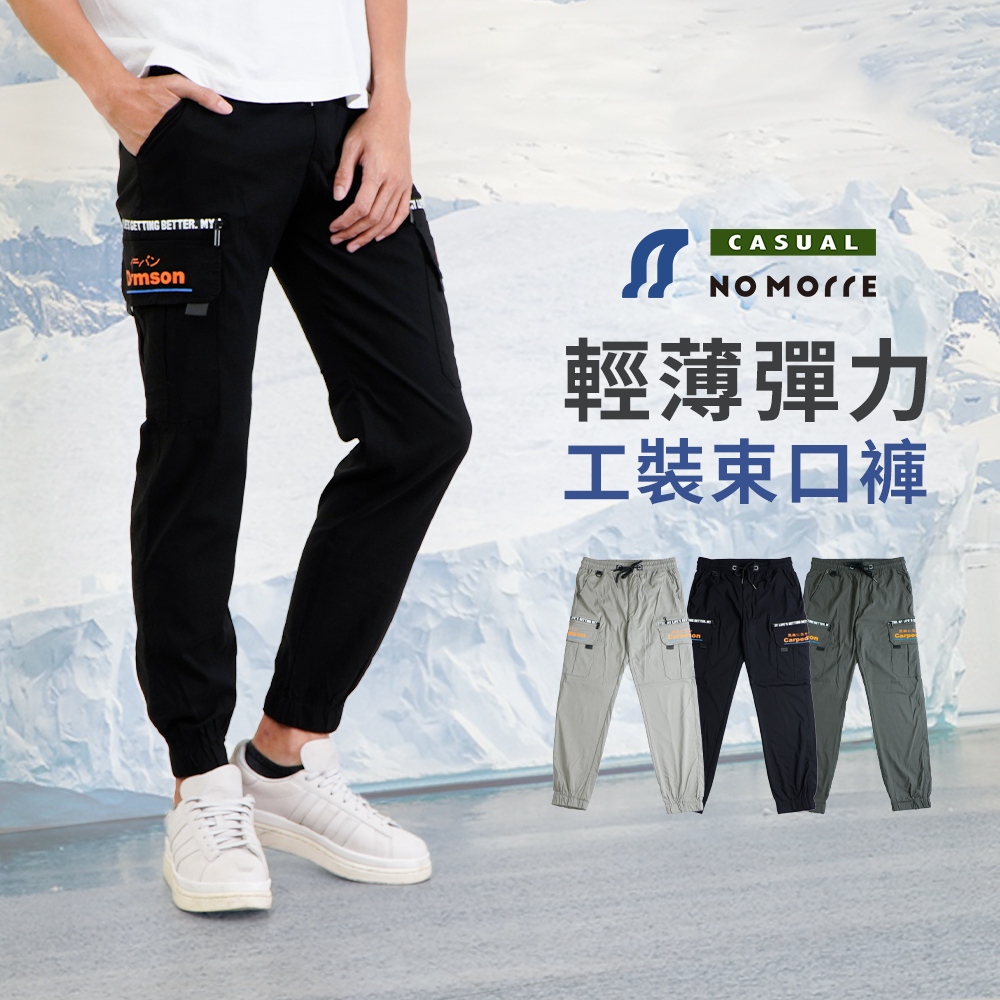 【NoMorre】棉質束口工作褲 28-36腰 鬆緊褲頭 褲襠拉鍊 可繫皮帶 縮口褲 兩款三色 台灣現貨 #5735