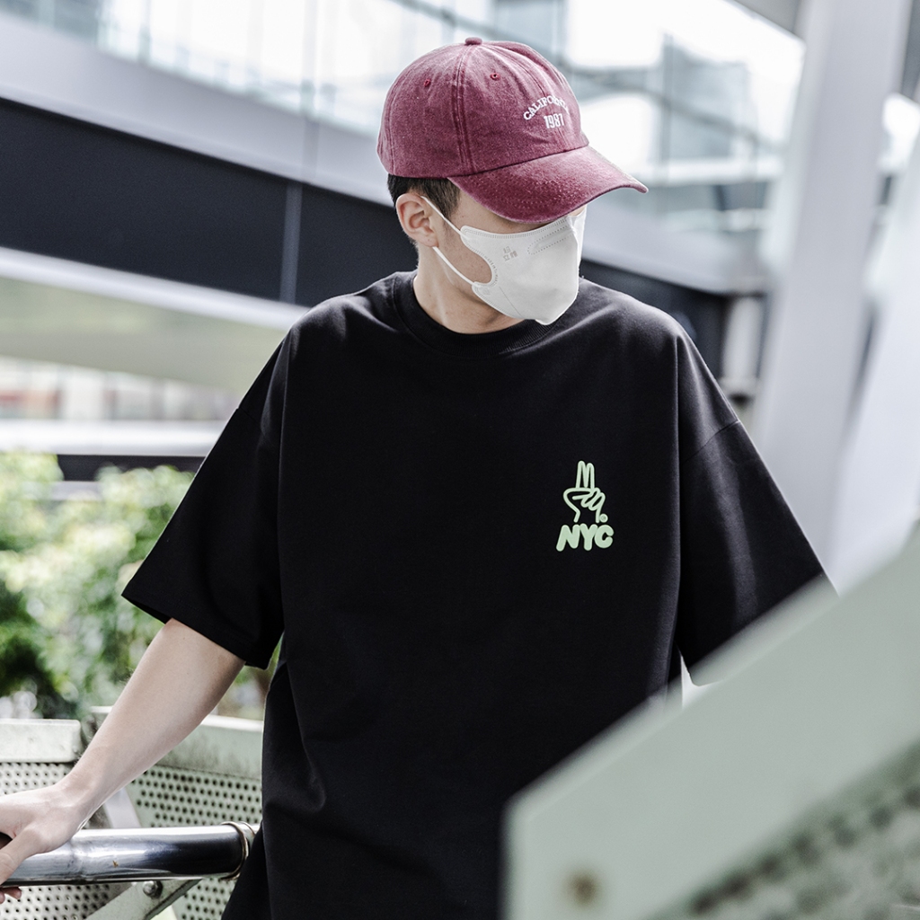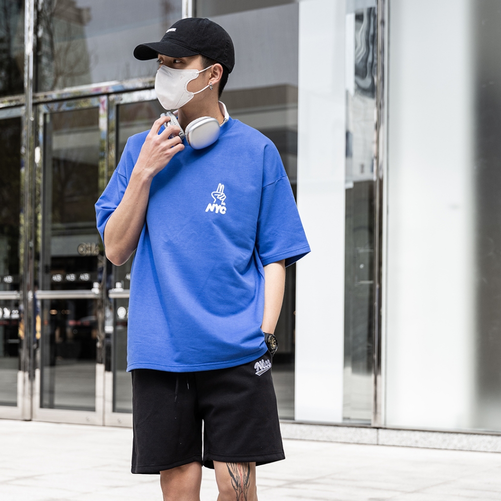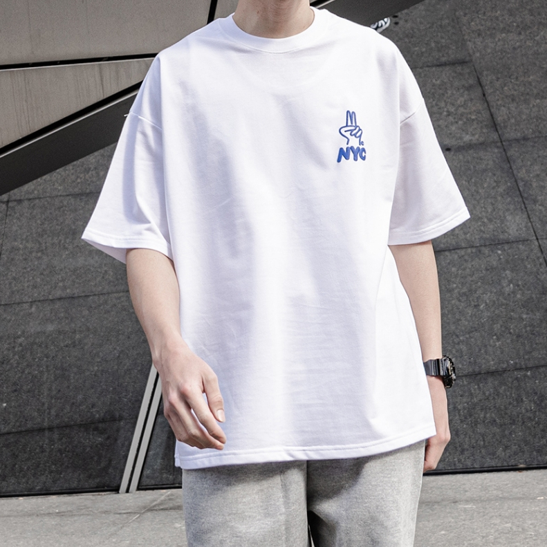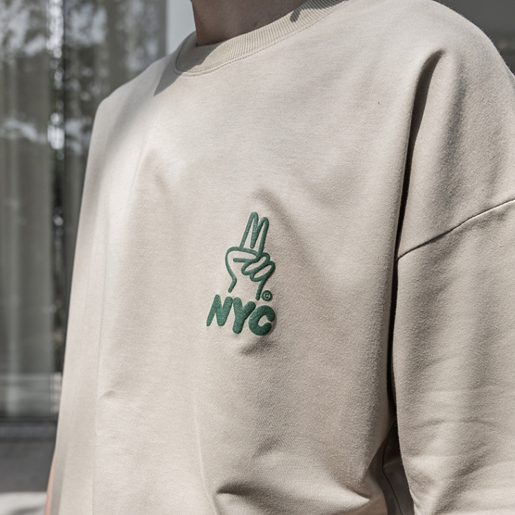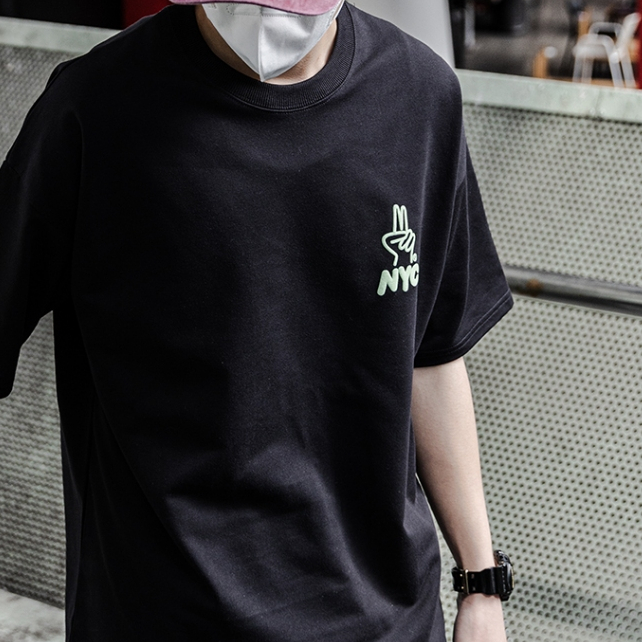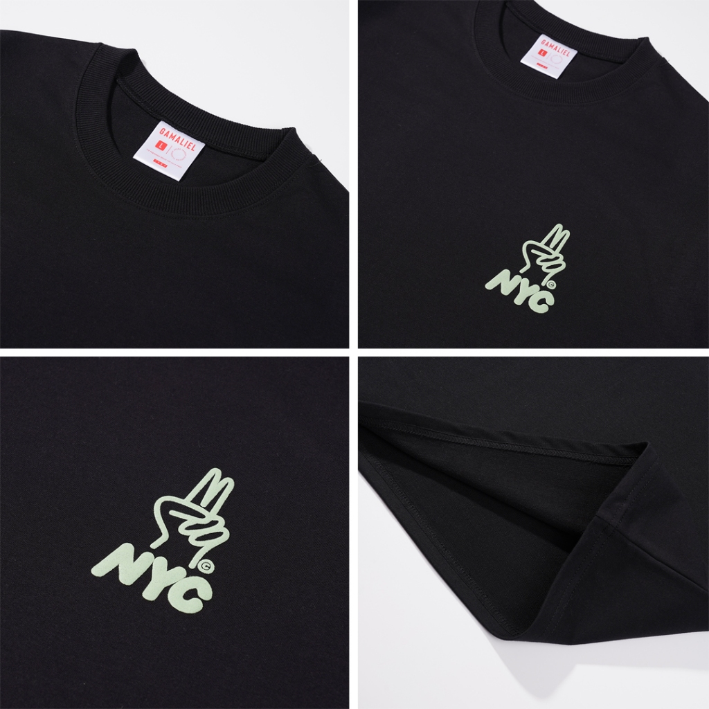 QIAO 韓國新貨 NYC 勝利之手 立體發泡 高磅 細絨棉 落肩 五分袖 寬鬆 T恤 短袖 短T 情侶 帥T 衣服 T黑色,M|黑色,L|白色,M|白色,L|寶藍色,M|寶藍色,L|大地色,M|大地色,LT-ShirtsQIAO 潮人服飾旗艦店