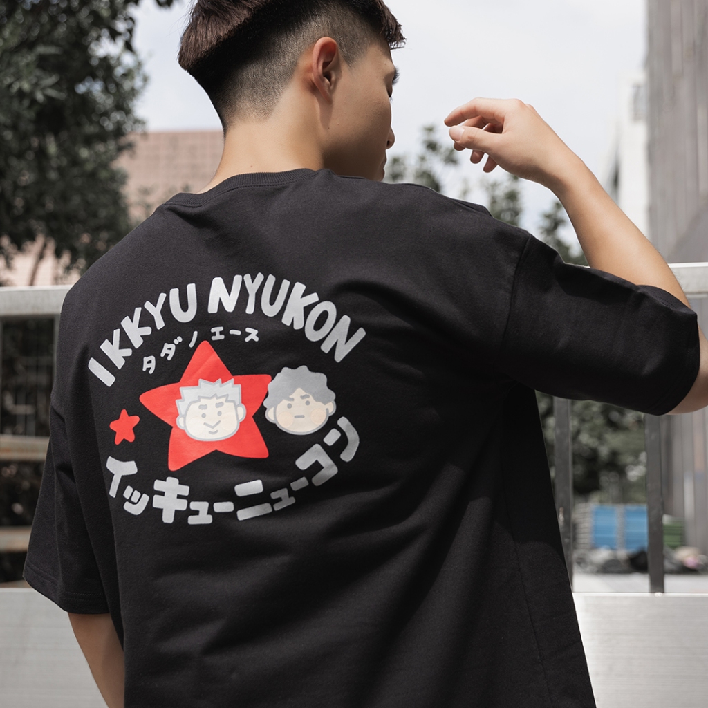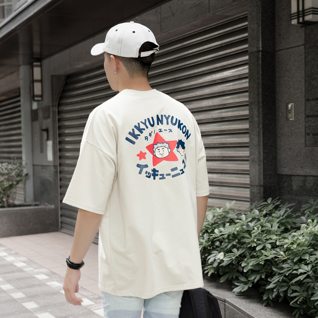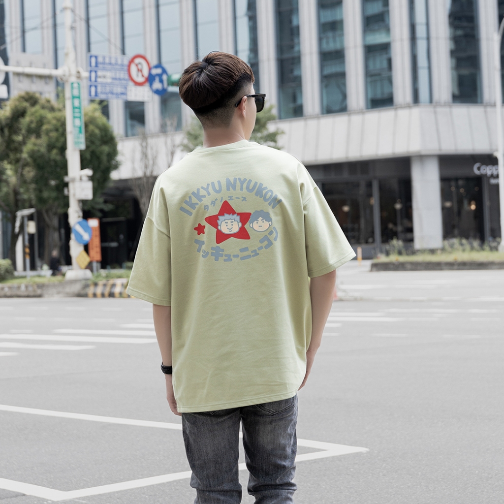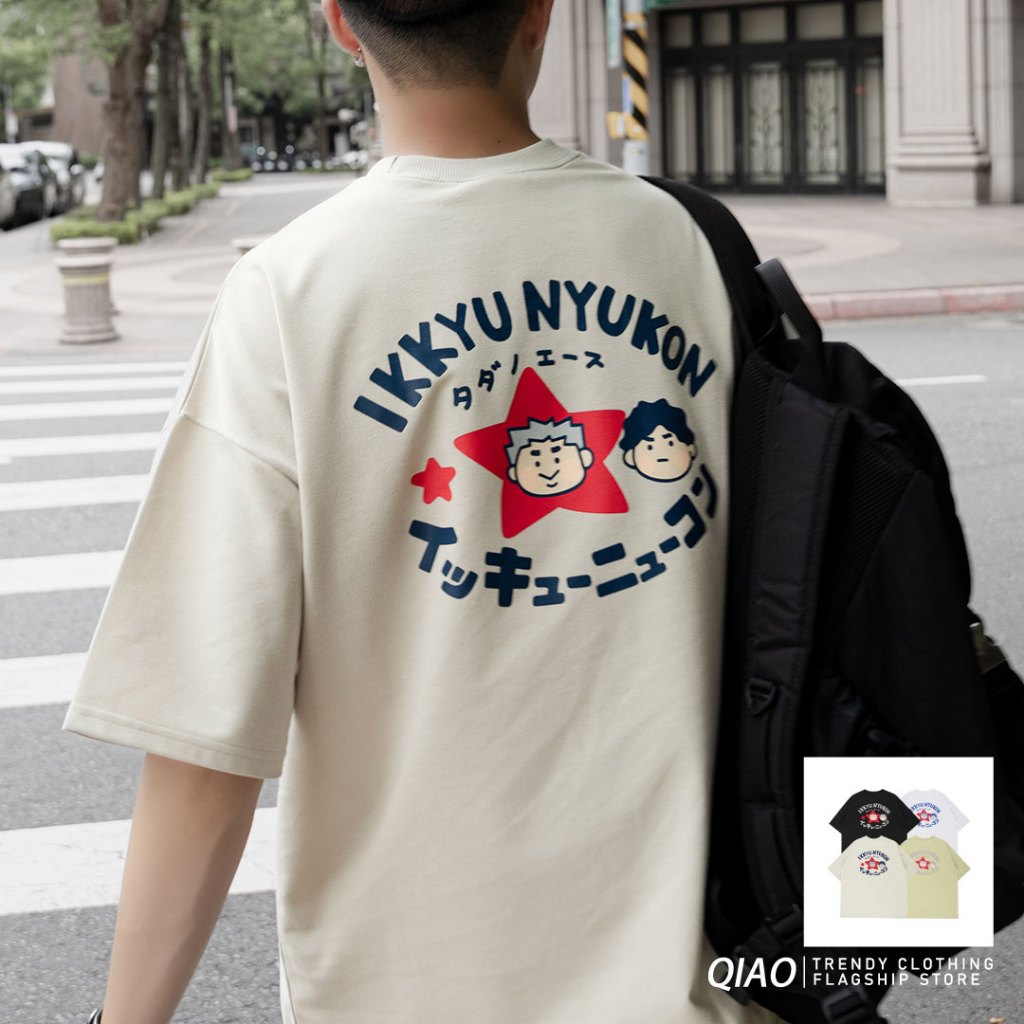 QIAO 超日本 IKKYU 一擊兄弟 插畫 日系 情侶裝 落肩 五分袖 寬鬆 T恤 短袖 短T 男裝 男生衣服 可愛衣黑色,M|黑色,L|白色,M|白色,L|灰杏,M|灰杏,L|薄荷綠,M|薄荷綠,LT-ShirtsQIAO 潮人服飾旗艦店