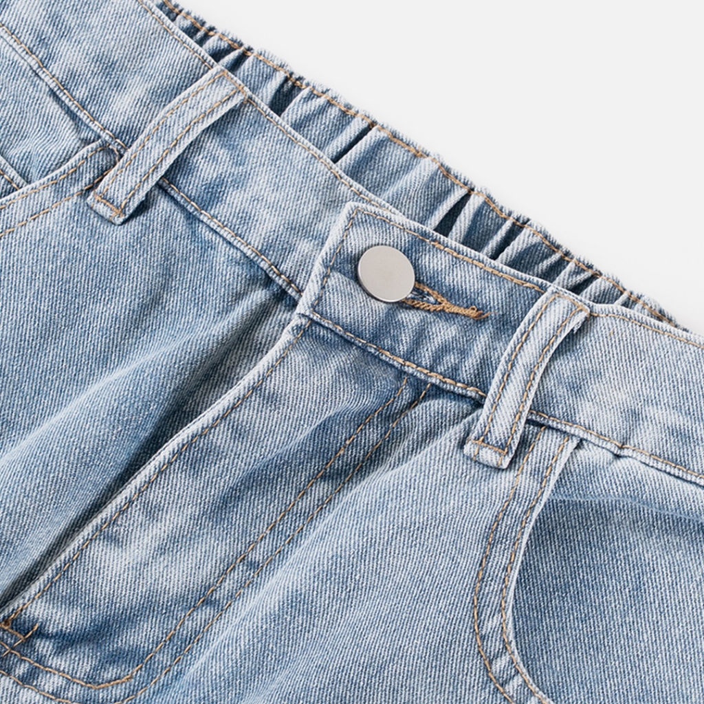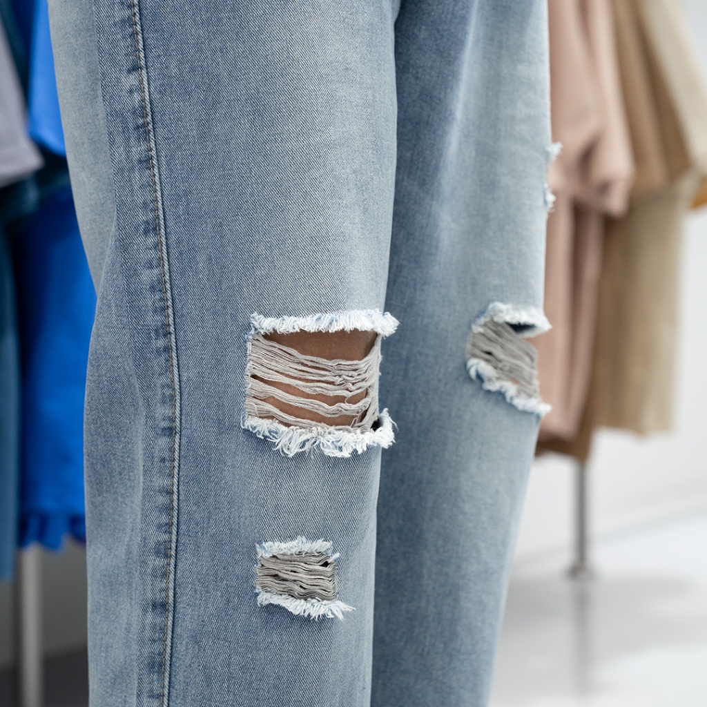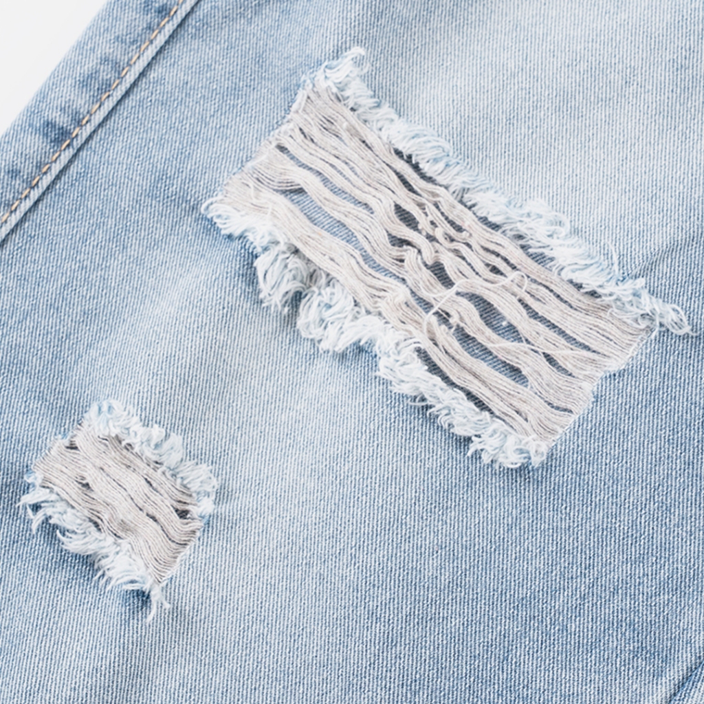 QIAO 水洗刷破 淺藍牛仔褲 直筒褲 基礎 寬褲 破褲 素色 長褲 休閒長褲 牛仔褲M|L|XL|2XLQIAO 潮人服飾旗艦店
