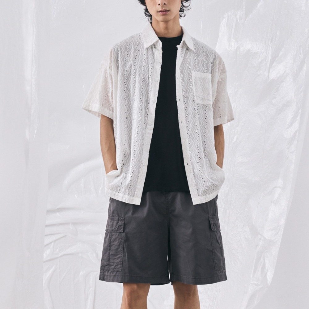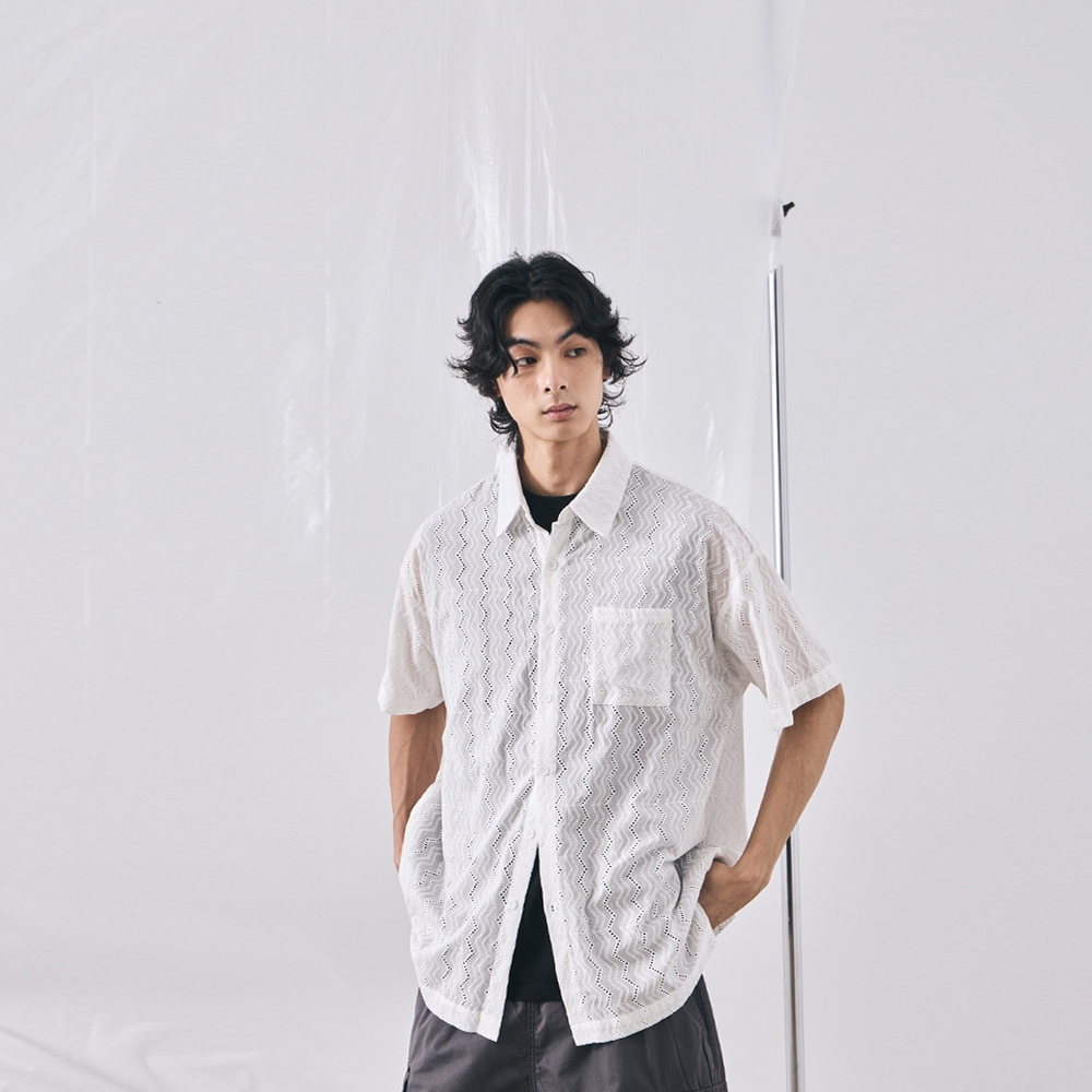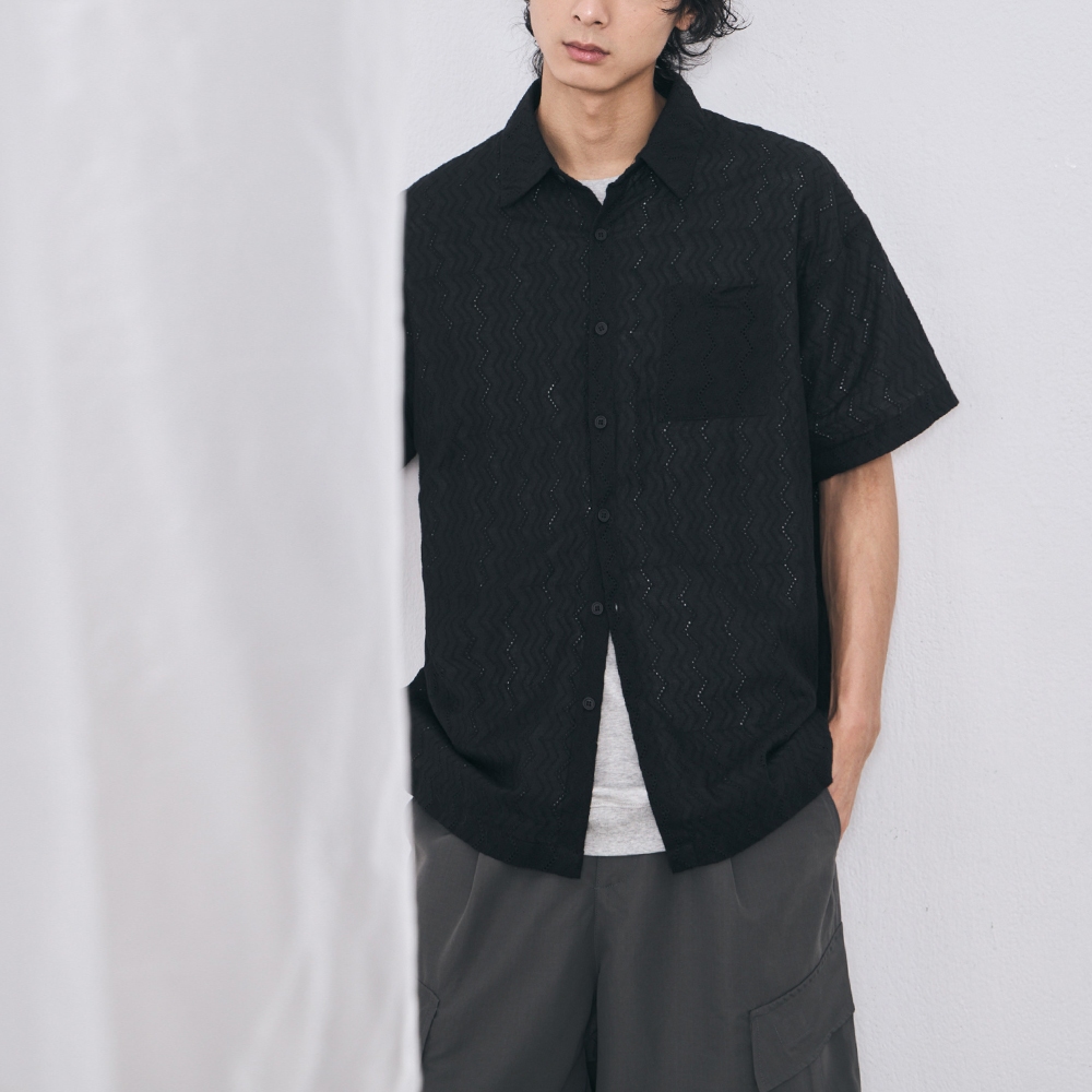 QUEENSHOP_ S 男裝 緹花鏤空造型寬版短袖襯衫 兩色售 M/L 現+預 【01025574】黑M|黑L|白M|白LShirtsQUEENSHOP