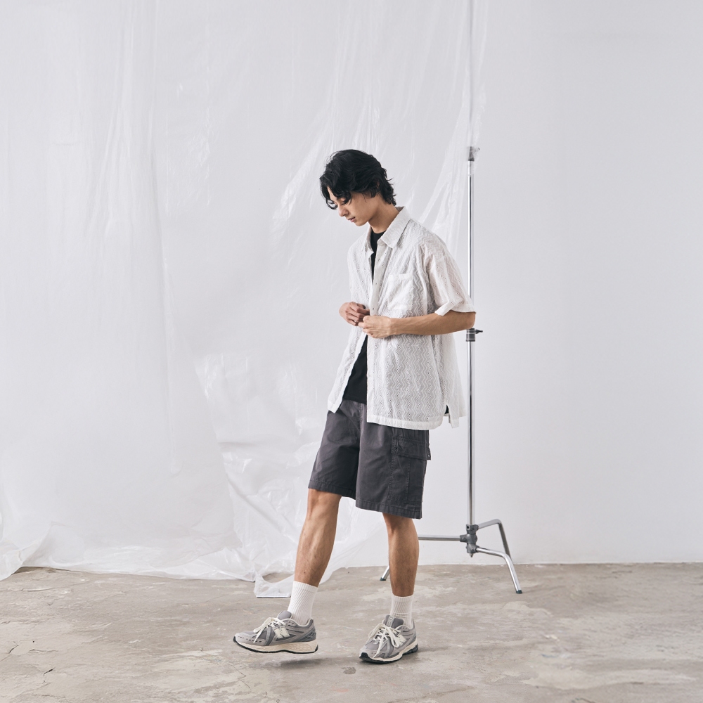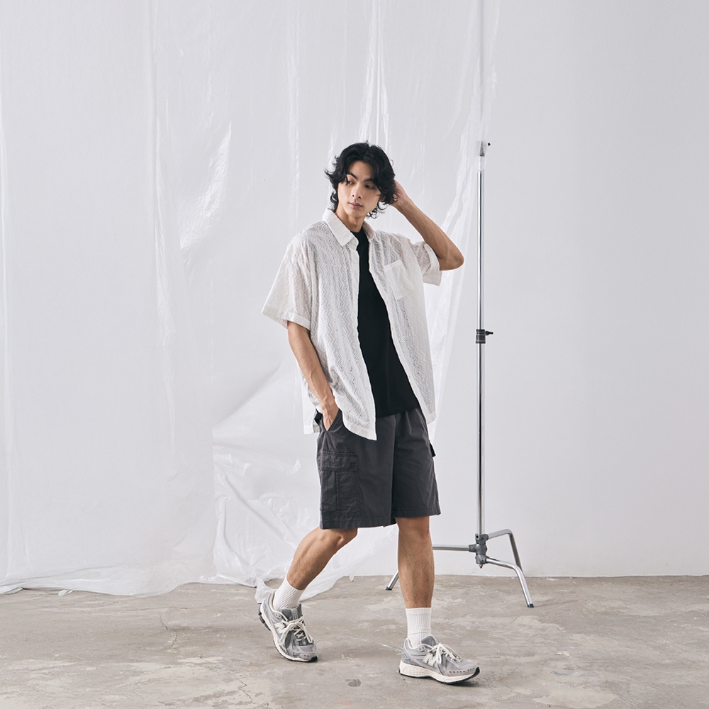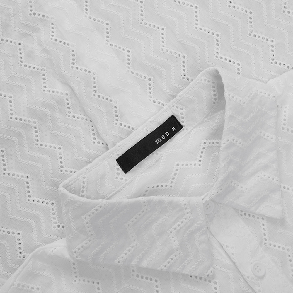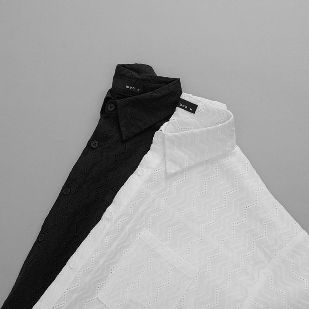 QUEENSHOP_ S 男裝 緹花鏤空造型寬版短袖襯衫 兩色售 M/L 現+預 【01025574】黑M|黑L|白M|白LShirtsQUEENSHOP