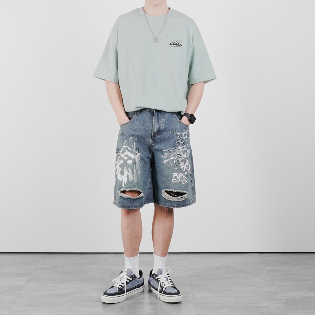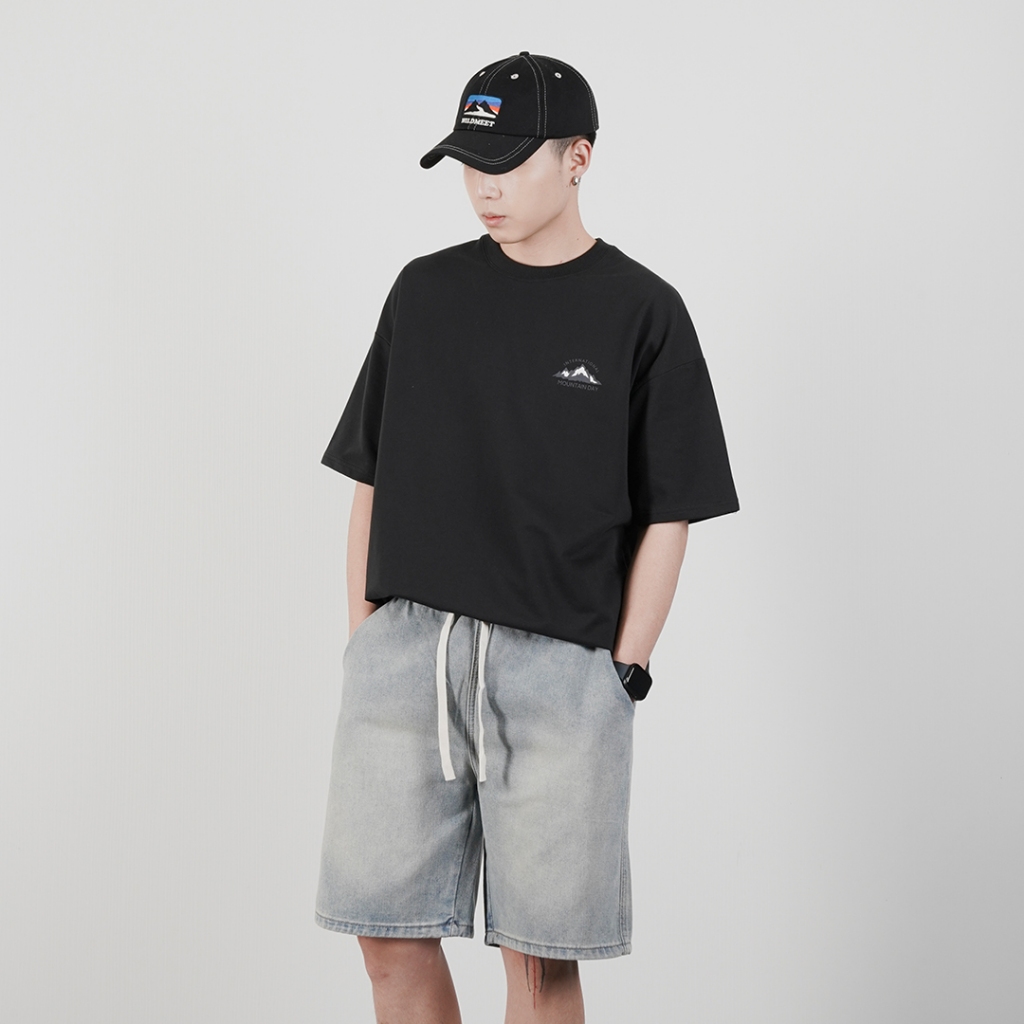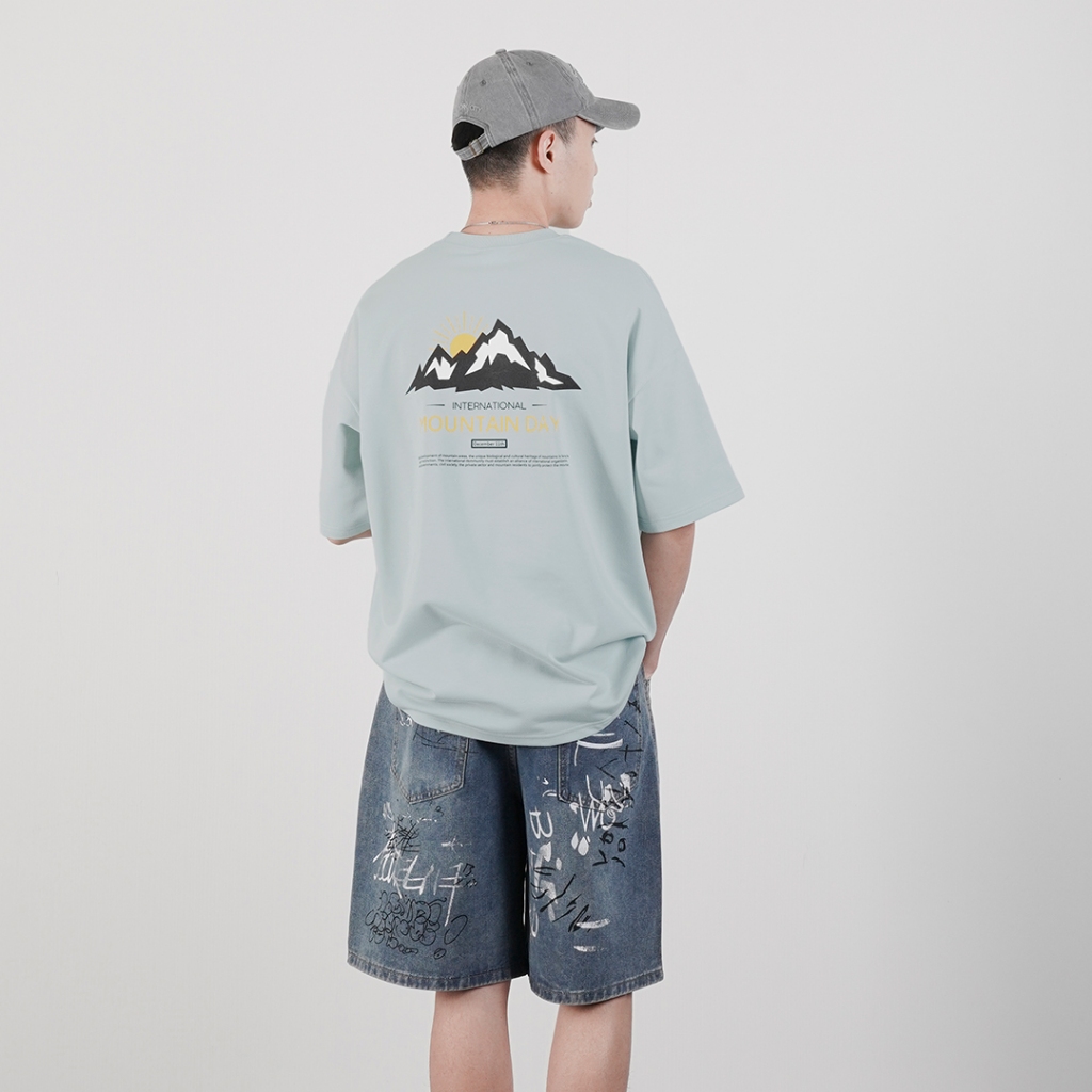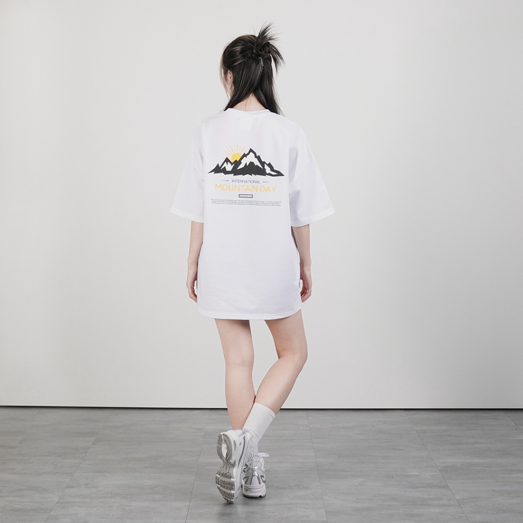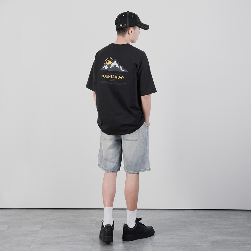 【QIAO】MOUNTAIN DAY 山脈短T 細絨棉 落肩 短T 寬鬆T 情侶 穿搭 日系 短袖上衣 圓領上衣