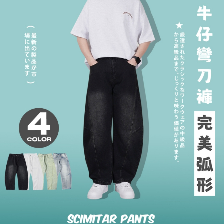 【QIAO】彎刀剪裁寬褲 錐形牛仔褲 / 落地褲 / 寬版直筒褲 4色可選 錐形褲 長褲 褲子黑色,M|黑色,L|黑色,XL|黑色,XXL|懷舊藍,M|懷舊藍,L|懷舊藍,XL|懷舊藍,XXL|白色,M|白色,L|白色,XL|白色,XXL|黃泥,M|黃泥,L|黃泥,XL|黃泥,XXLQIAO 潮人服飾旗艦店