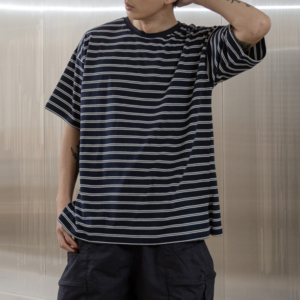 QUEENSHOP_ S 短袖 男裝 撞色條紋純棉短袖上衣 兩色售 S-XL 現+預 【01190182】深藍S|深藍M|深藍L|深藍XL|深灰S|深灰M|深灰L|深灰XLT-ShirtsQUEENSHOP
