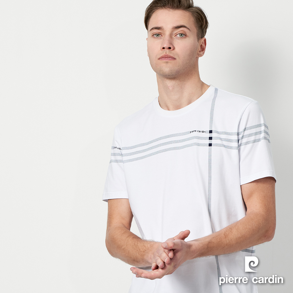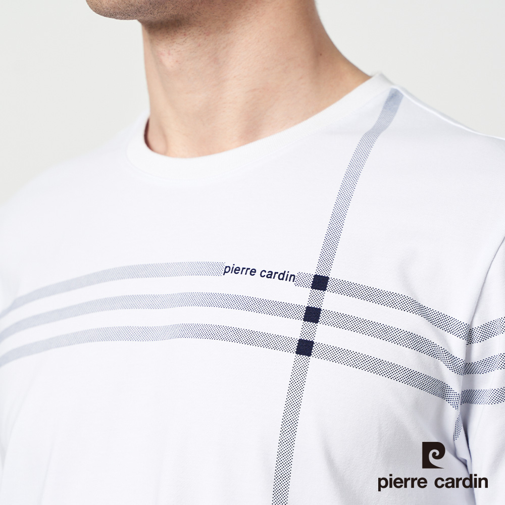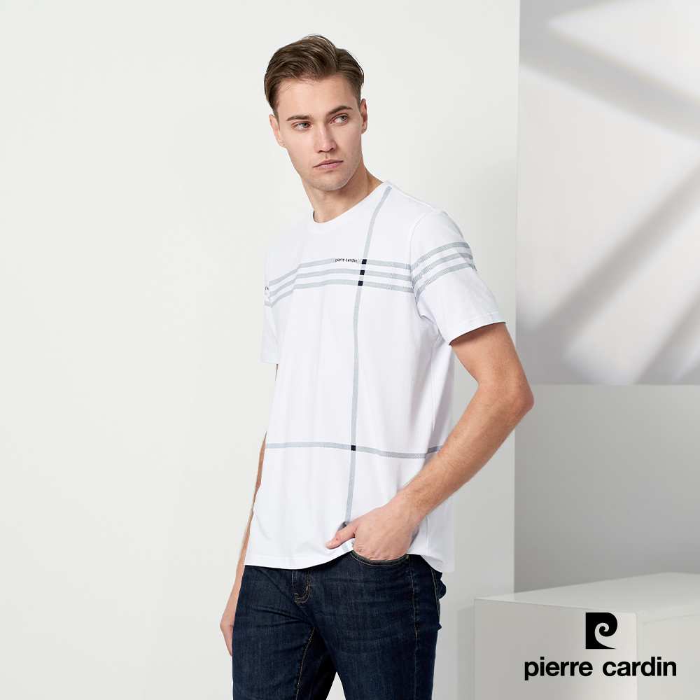 【pierre cardin 皮爾卡登】男款 大定位格子印花圓領T恤-白色 (5237281-90)M|L|XL|3LT-ShirtsPierre Cardin 皮爾卡登 【官方】休閒服飾