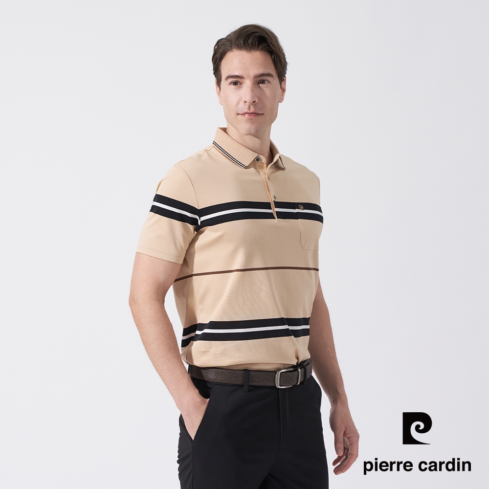 【pierre cardin 皮爾卡登】男款 橫條短袖POLO衫-卡其色 (5247264-84)M|L|XL|3LPolo ShirtsPierre Cardin 皮爾卡登 【官方】休閒服飾