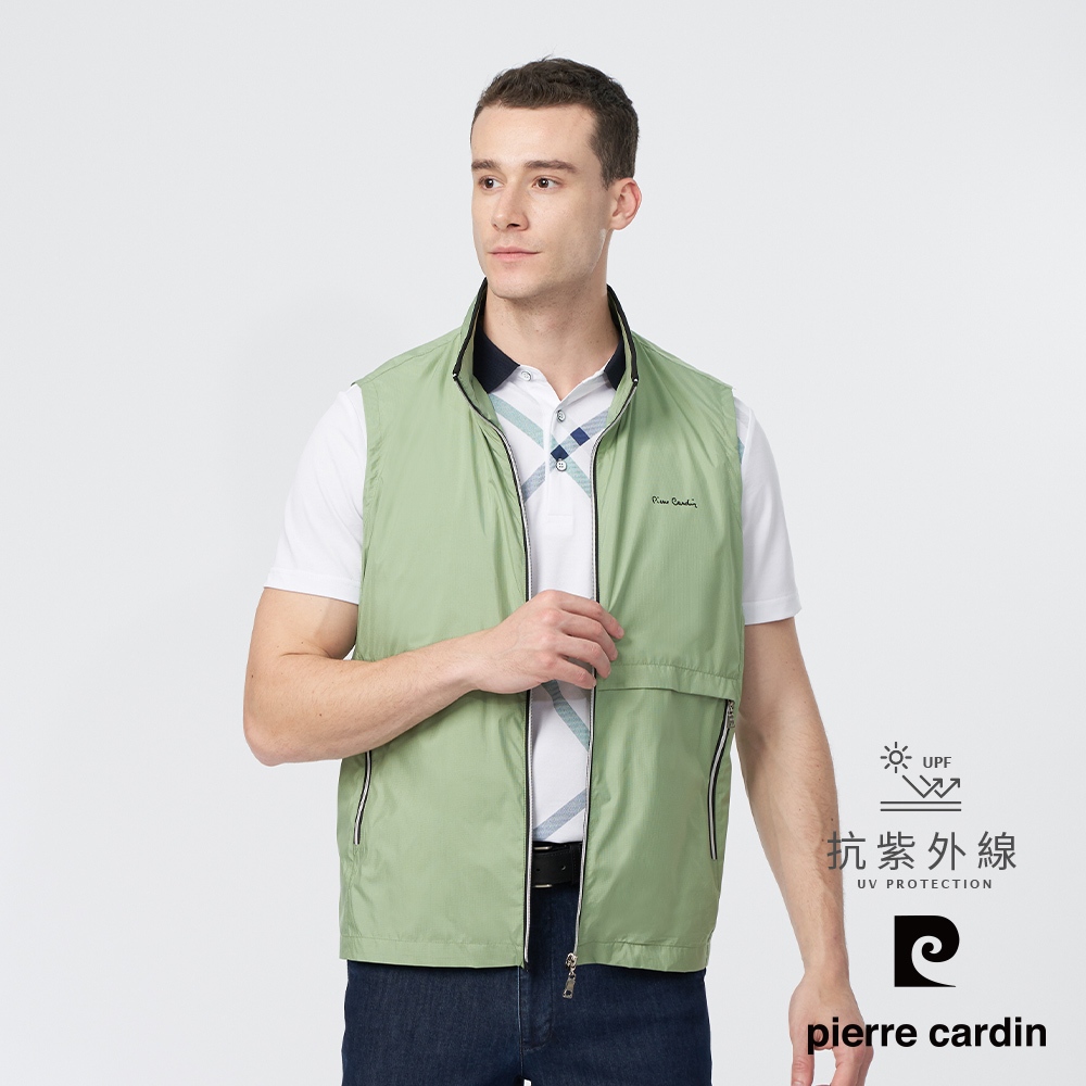 【pierre cardin 皮爾卡登】男款 都會休閒立領細格紋薄背心-嫩綠色 (5247361-45)M|L|XL|3LVestsPierre Cardin 皮爾卡登 【官方】休閒服飾