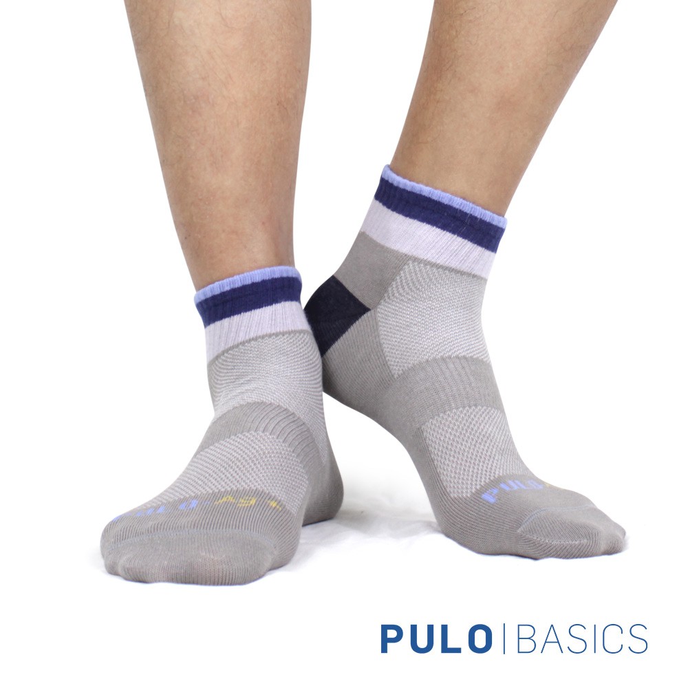 PULO-足弓加強條紋腳跟防磨踝襪-3雙入 足弓加壓 吸溼排汗 船襪 氣墊毛巾底 厚底腳跟防磨 運動襪 條紋襪 籃球襪黑灰L|黑紫MPULO布蘿襪館官方直營旗艦店|穿立淨除臭襪