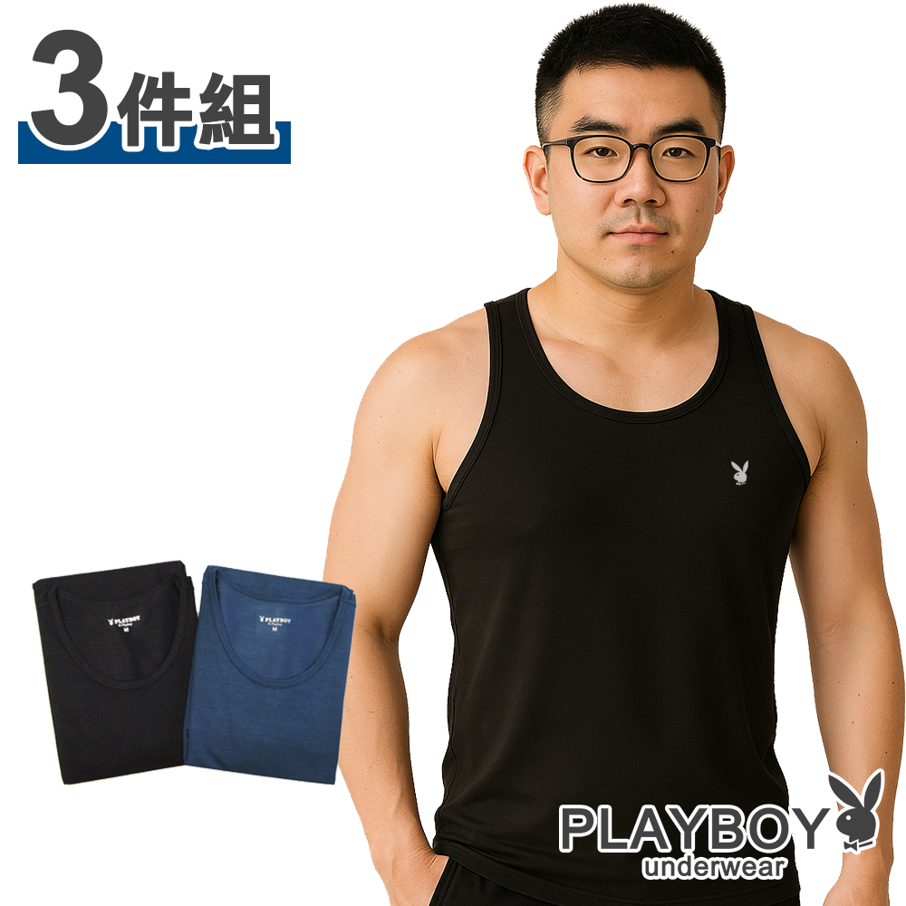 PLAYBOY|氣網動能快乾機能背心|3件組隨機,M|隨機,L|隨機,XL|隨機,XXLTanksPLAYBOY_英殷國際