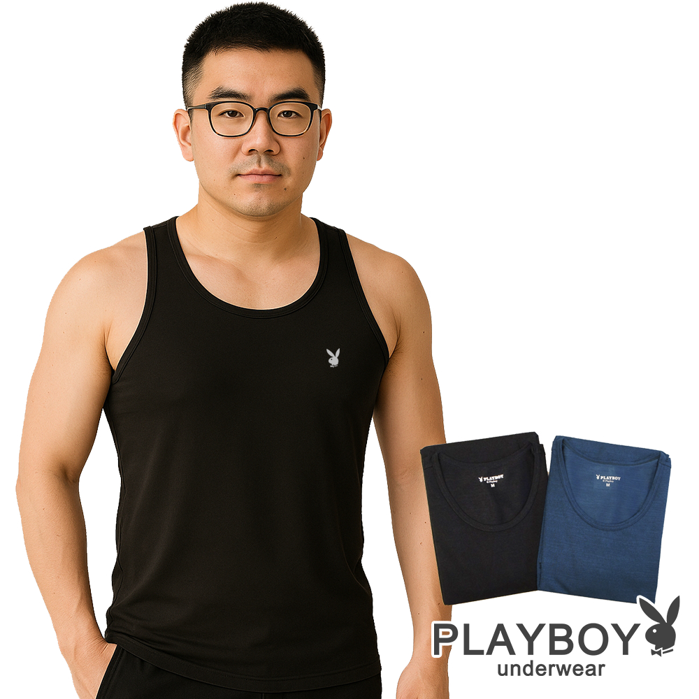 PLAYBOY|氣網動能快乾機能背心黑,L|黑,XL|黑,XXL|中霧藍,M|中霧藍,L|中霧藍,XL|中霧藍,XXL|黑,MVestsPLAYBOY_英殷國際