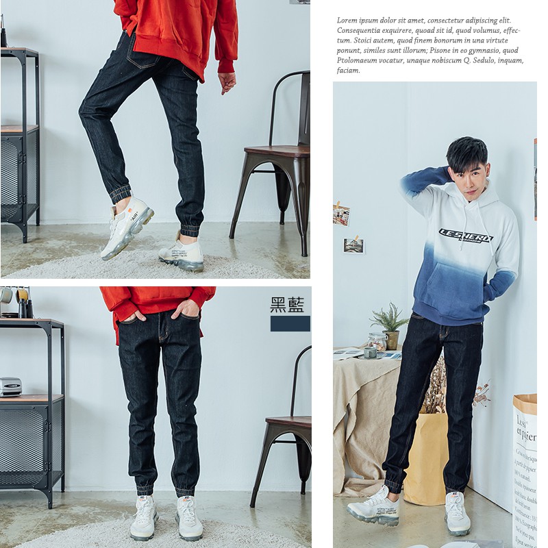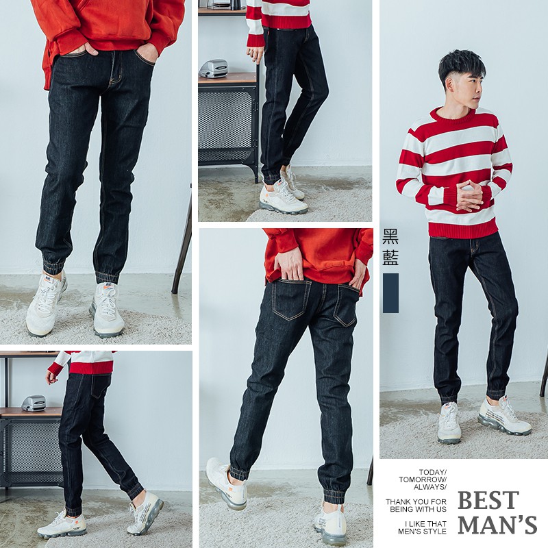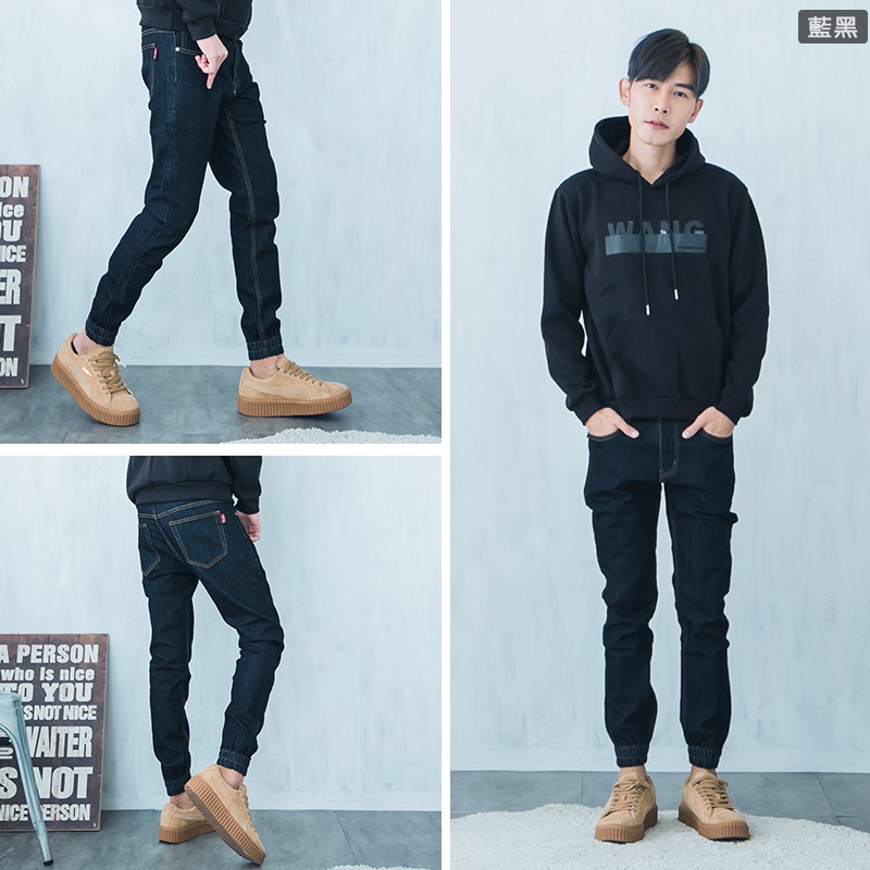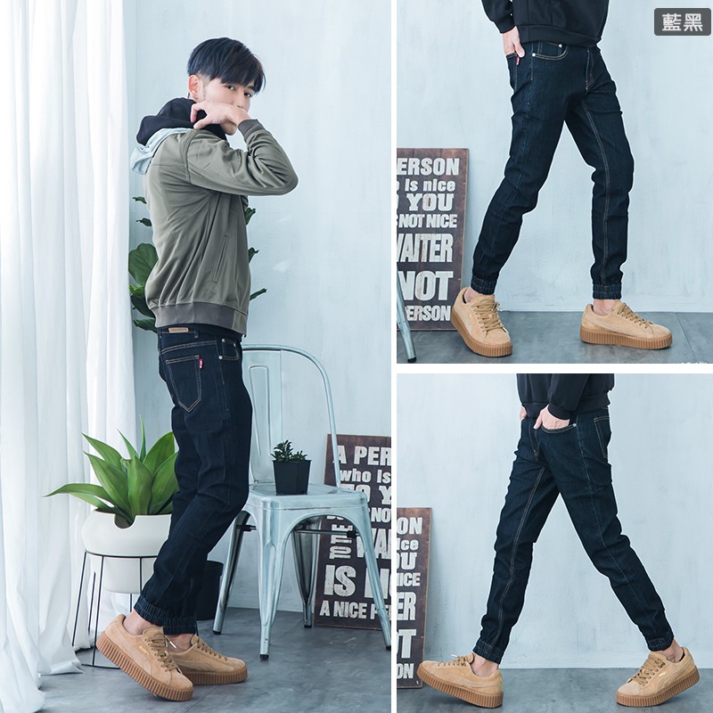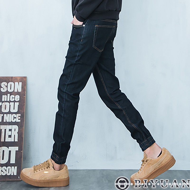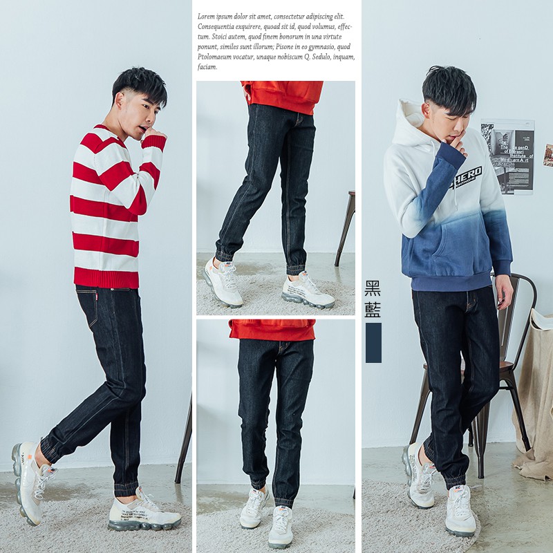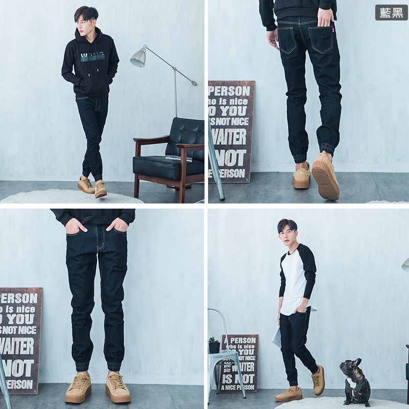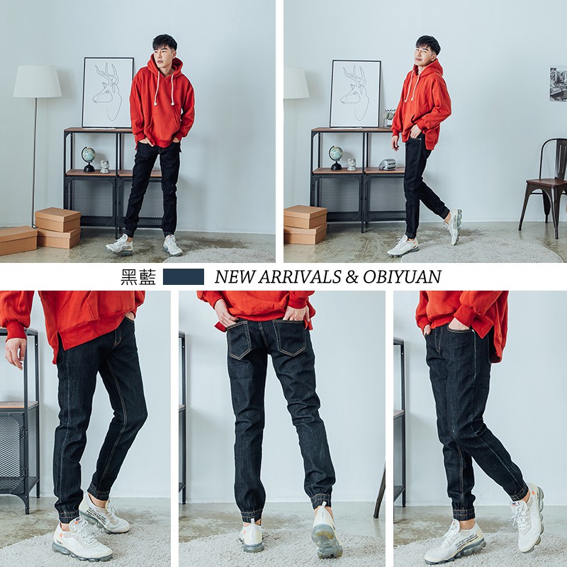 【OBIYUAN】束口褲 韓版 原色 單寧 牛仔褲 縮口褲 素面長褲【P1842】黑藍28|黑藍30|黑藍32|黑藍34OBIYUAN