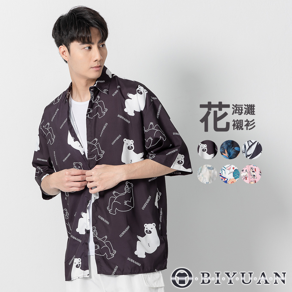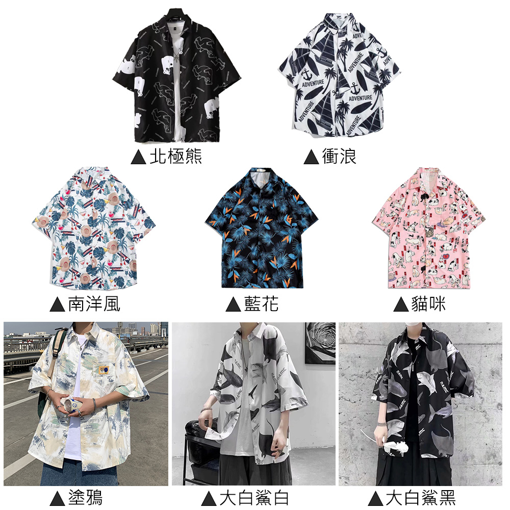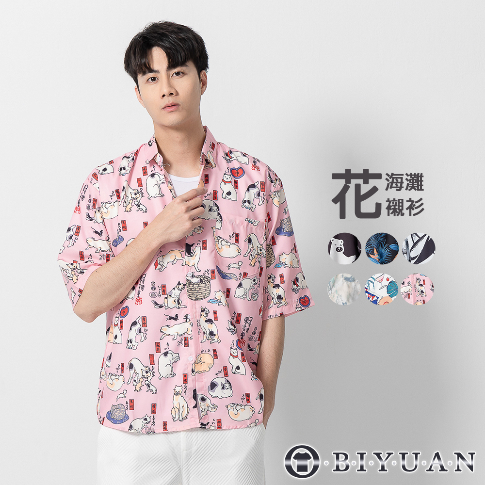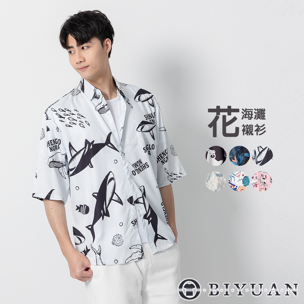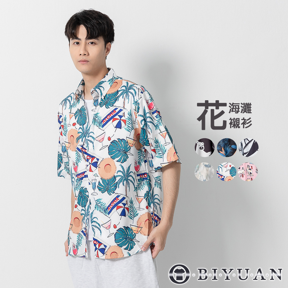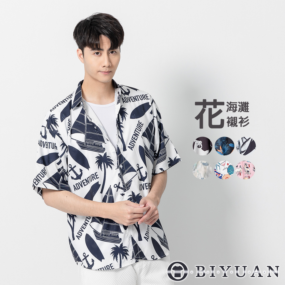 【OBIYUAN】出清 花襯衫 寬鬆 短袖 襯衫 海灘風 多款 上衣 薄外套 衣服【SR3007】衝浪,2XL|衝浪,3XL|藍花,2XL|藍花,XL|衝浪,XL|藍花,3XLShirtsOBIYUAN