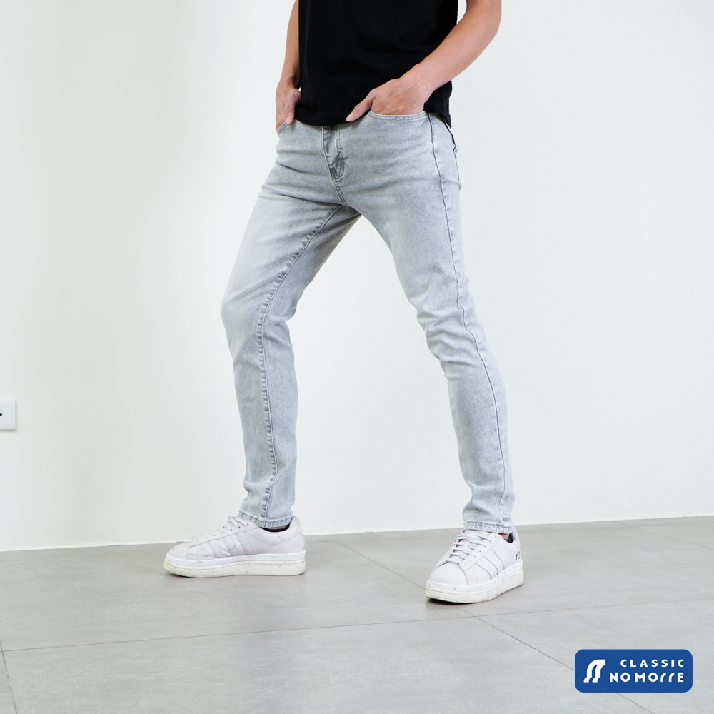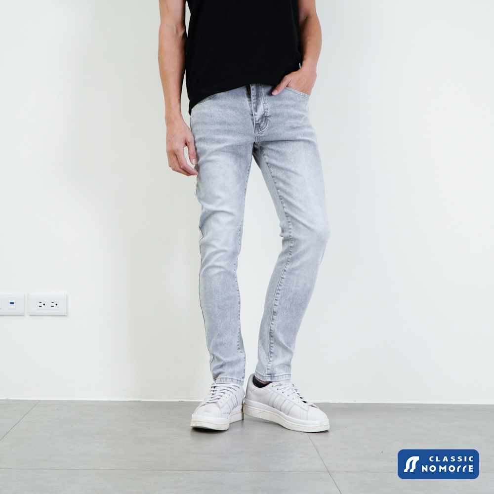 【NoMorre】水泥灰牛仔褲 牛仔褲男 素面無破 重磅水泥灰 水洗彈力 窄管 M-3L 台灣現貨 #5672