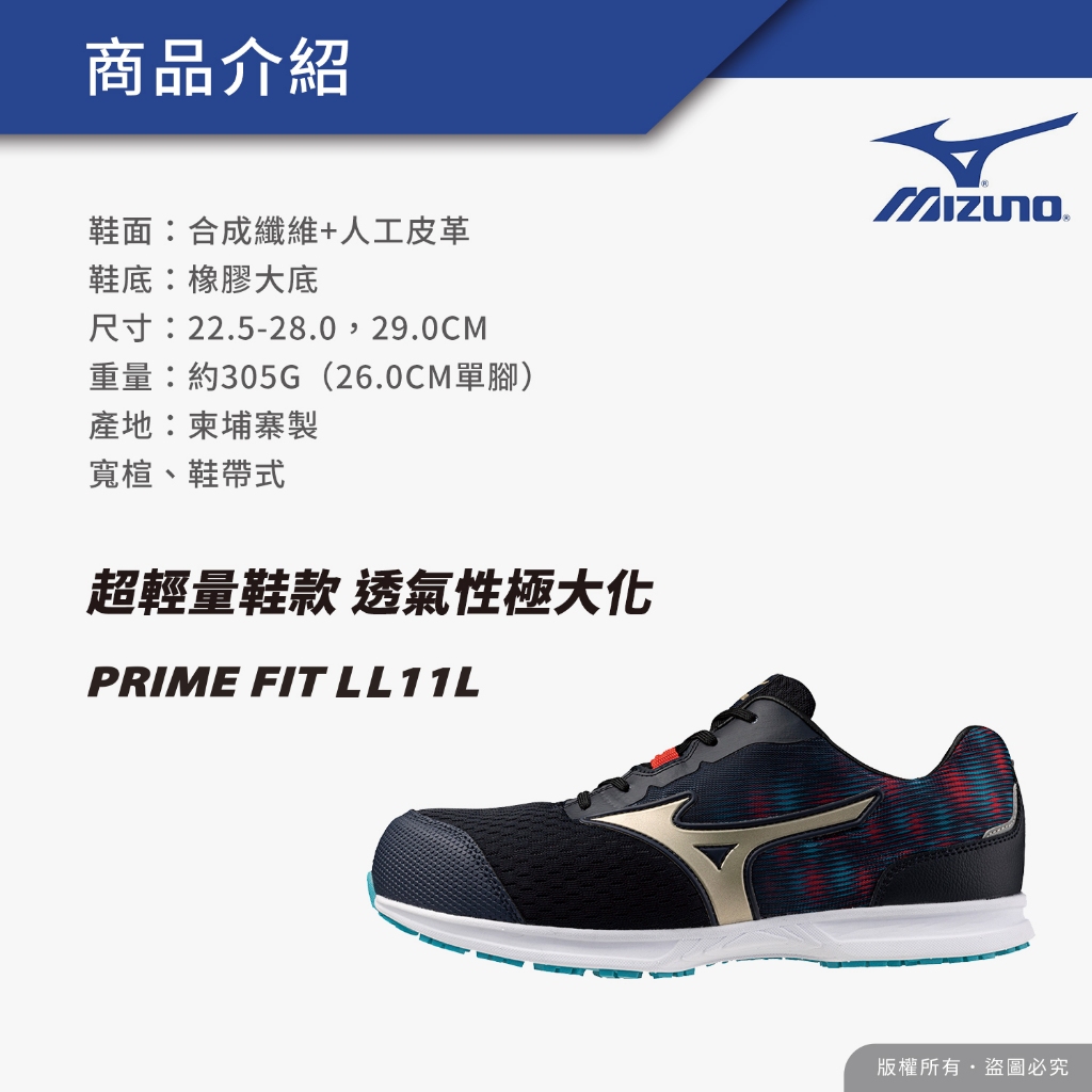 • 美津濃Mizuno防護鞋│買一送二+開立發票【PRIME FIT LL 11L】超輕量 塑鋼 工作鞋 安全 N9209