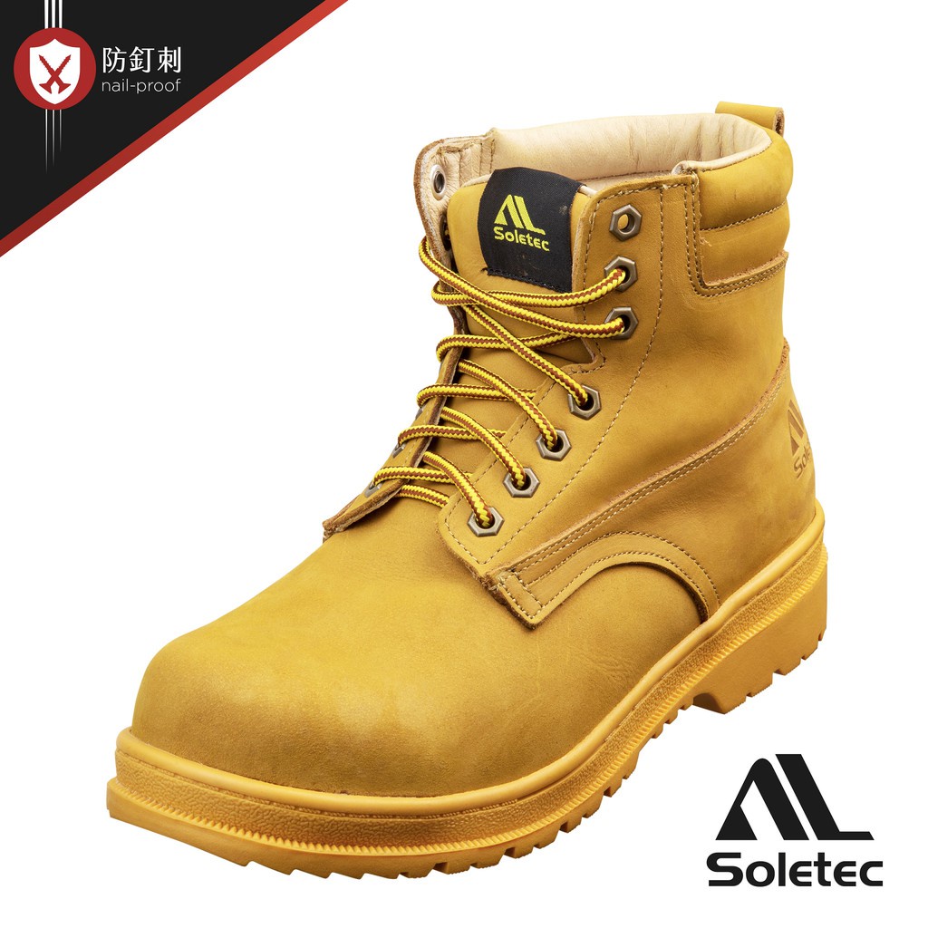 【Soletec超鐵安全鞋】S108507 黃色真皮中筒寬楦防穿刺安全鞋 輕量防穿刺布 CNS20345合格安全鞋250/US7|255/US7.5|260/US8|265/US8.5|270/US9|280/US10|290/US11|300/US12Safety BootsSoletec超鐵安全鞋-工作就該穿好鞋