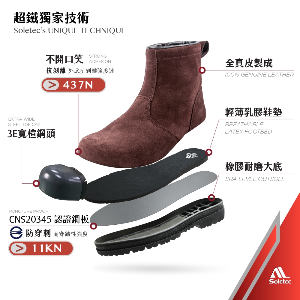 【Soletec超鐵安全鞋】C106605 咖啡色反毛皮安全工作鞋290/US11|250/US7|255/US7.5|260/US8|265/US8.5|270/US9|280/US10Safety BootsSoletec超鐵安全鞋-工作就該穿好鞋