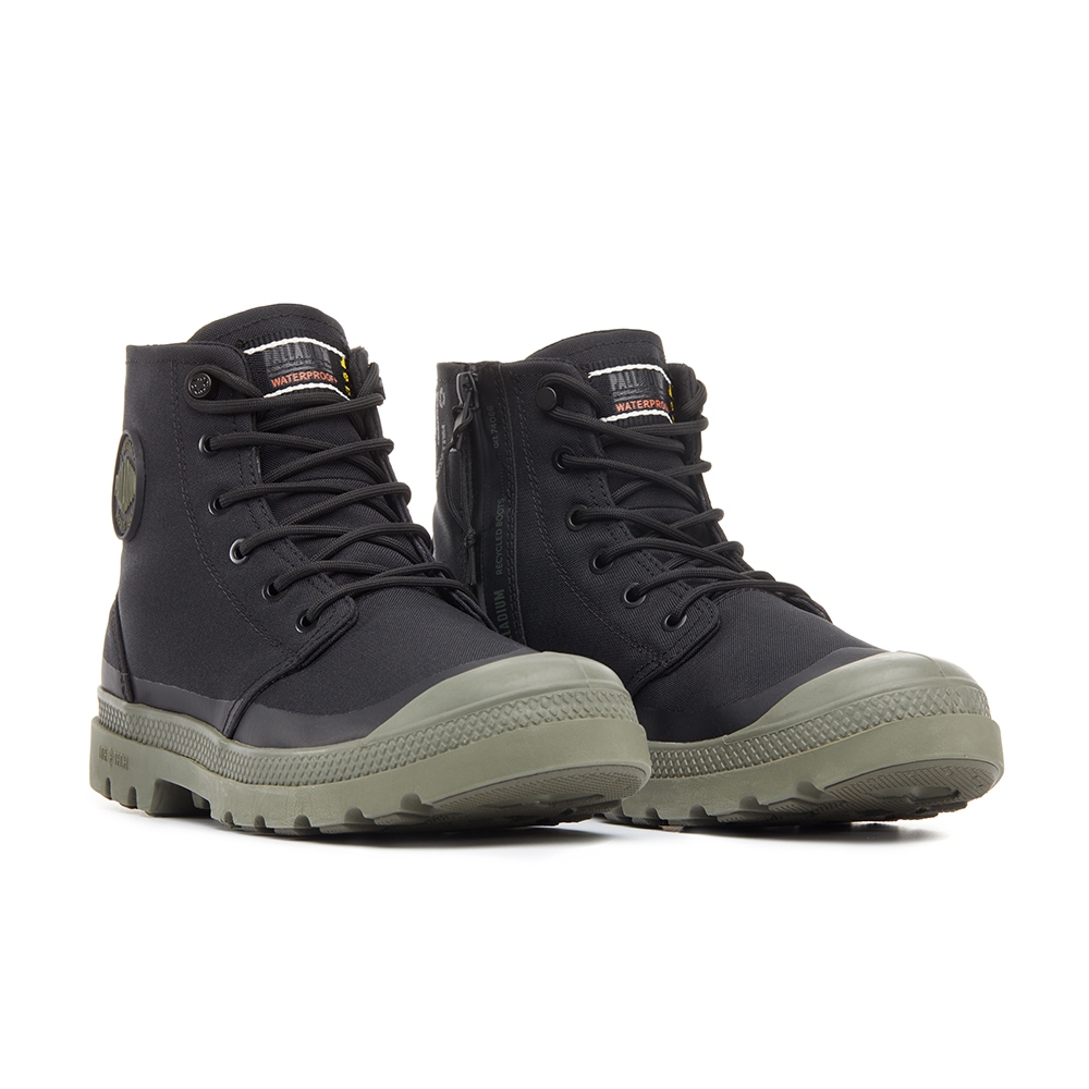 PALLADIUM PAMPA RCYCL LITE+WP+ ZIP再生科技輕量拉鍊橘標防水靴-中性-黑/墨綠