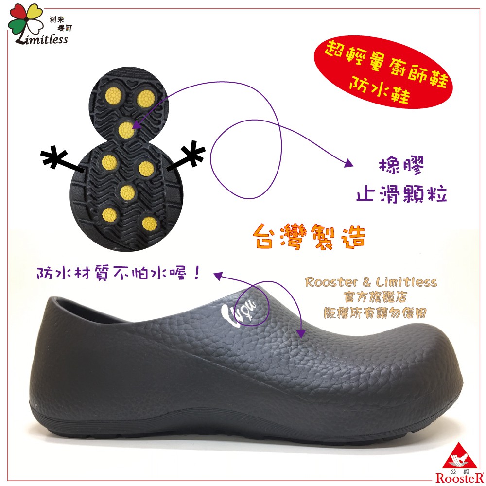 ROOSTER公雞 wow超輕量防水鞋 廚師鞋 廚房工作鞋 荷蘭鞋 園藝鞋 防滑鞋626643(28)|38(24)|39(24.5)|40(25)|41(26)|42(27)|36(23)|37(23.5)Rooster&Limitless官方旗艦店