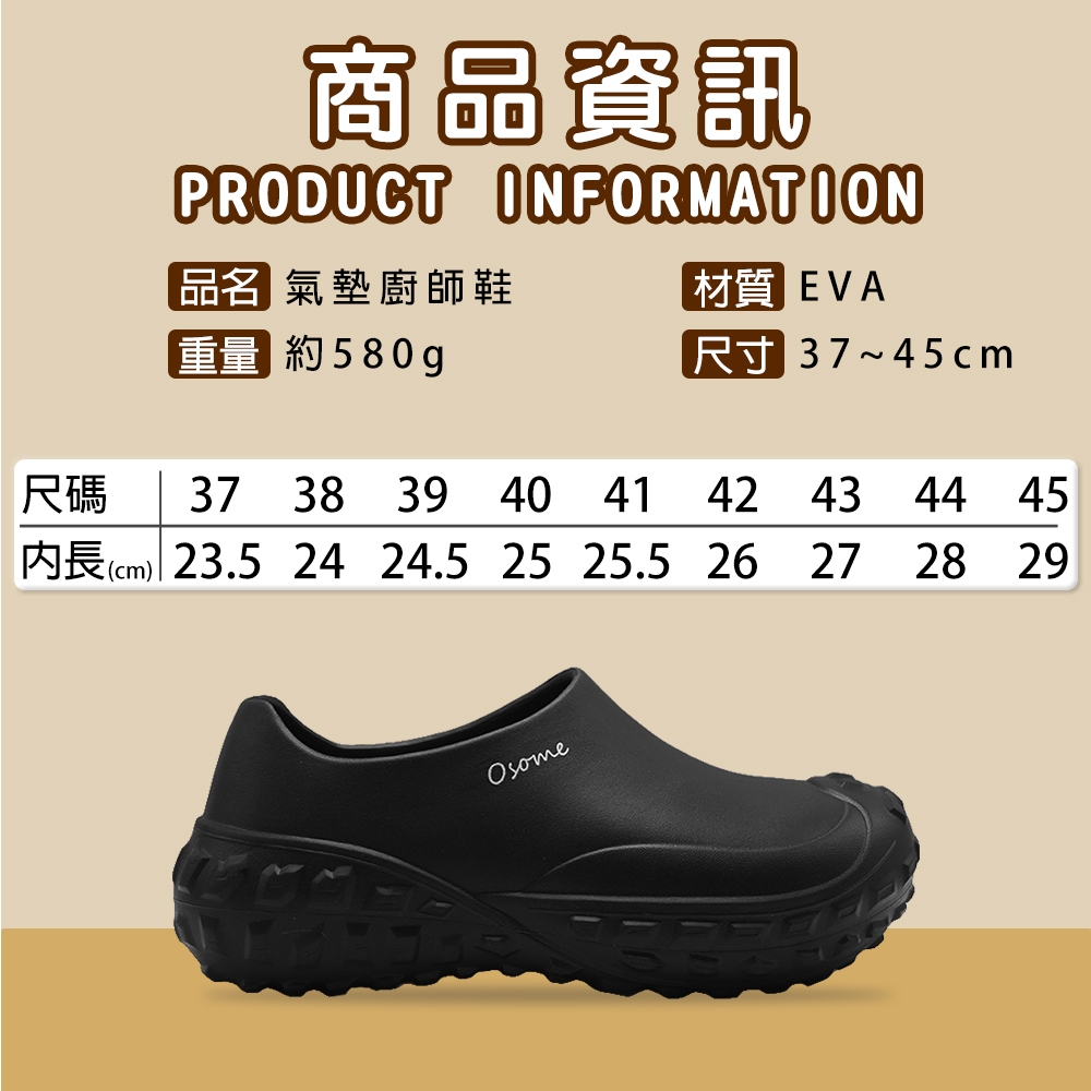 【餐廳必備】OSOME 舒適氣墊廚師鞋 廚房專用工作鞋 厚底軟Q廚師鞋 防水鞋 防滑鞋 懶人鞋 工作鞋 K5556奧森K5556/黑色,37號(內長23cm)|K5556/黑色,38號(內長24cm)|K5556/黑色,39號(內長24.5cm)|K5556/黑色,40號(內長25cm)|K5556/黑色,41號(內長25.5cm)|K5556/黑色,42號(內長26cm)|K5556/黑色,43號(內長27cm)|K5556/黑色,44號(內長28cm)|K5556/黑色,45號(內長29cm)Health SlippersOSOME奧森鞋業