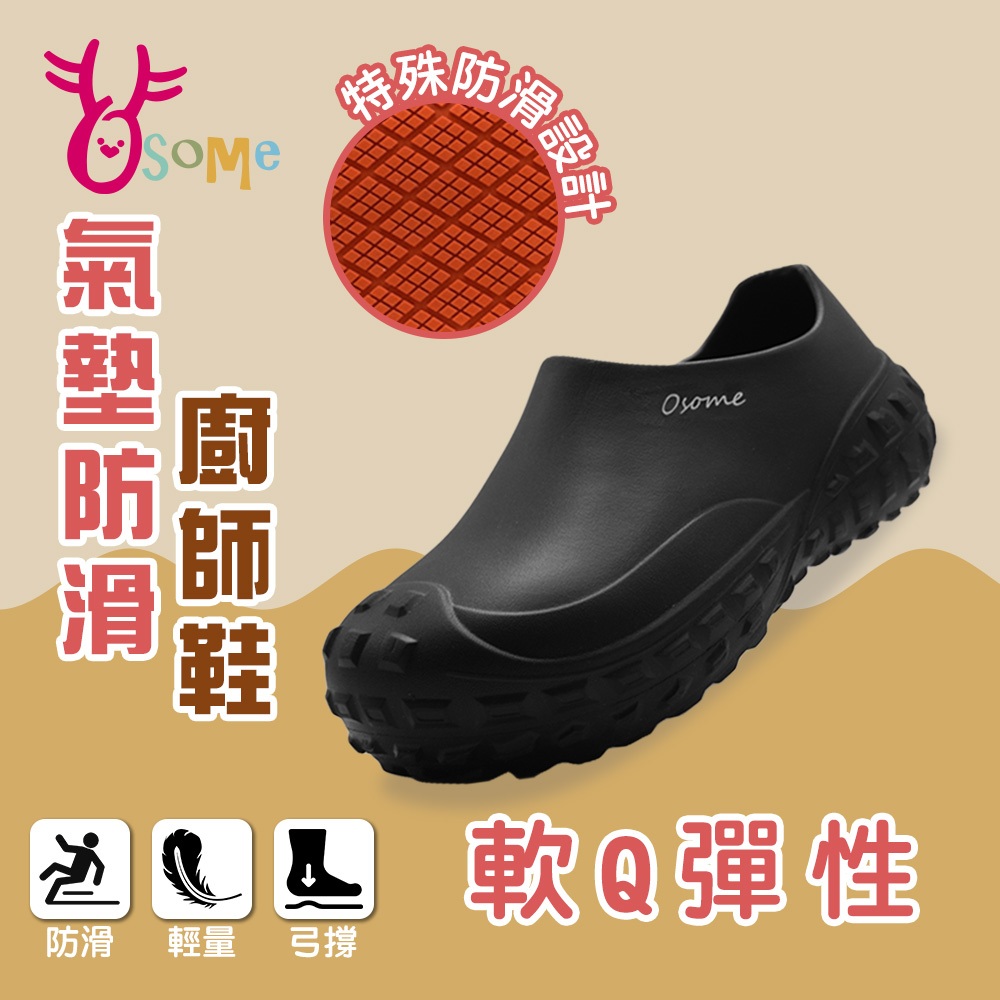 【餐廳必備】OSOME 舒適氣墊廚師鞋 廚房專用工作鞋 厚底軟Q廚師鞋 防水鞋 防滑鞋 懶人鞋 工作鞋 K5556奧森