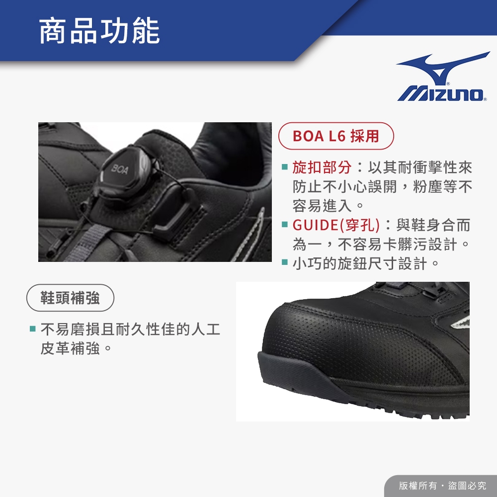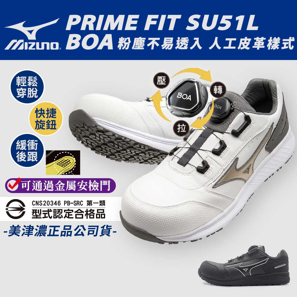 • 美津濃Mizuno防護鞋│買一送二【PRIME FIT SU51L BOA 旋鈕】塑鋼鞋 全皮工作鞋 安全鞋 M9288