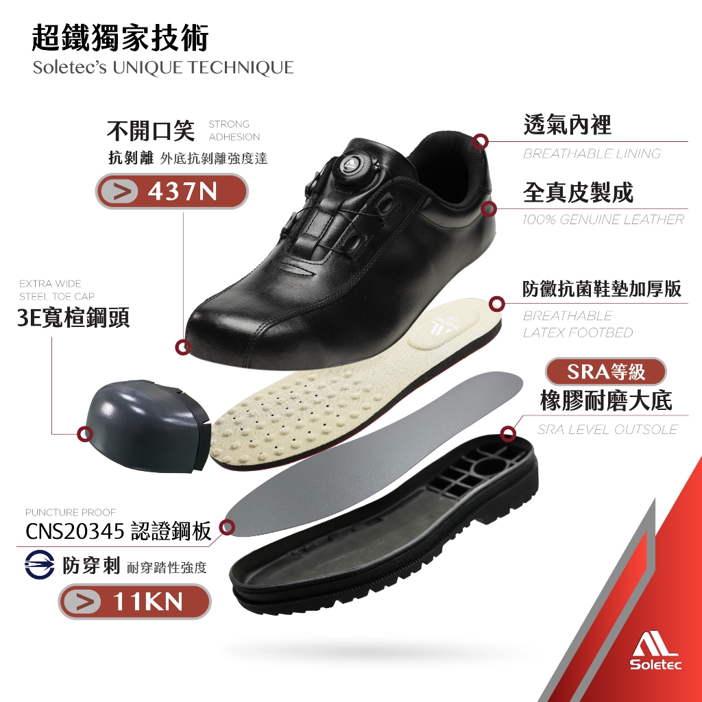 【Soletec超鐵安全鞋】EK1755 真皮寬楦防穿刺旋鈕安全鞋 防潑水30/US12|28/US10|29/US11|25/US7|255/US7.5|26/US8|265/US8.5|27/US9|24/US6Safety BootsSoletec超鐵安全鞋-工作就該穿好鞋