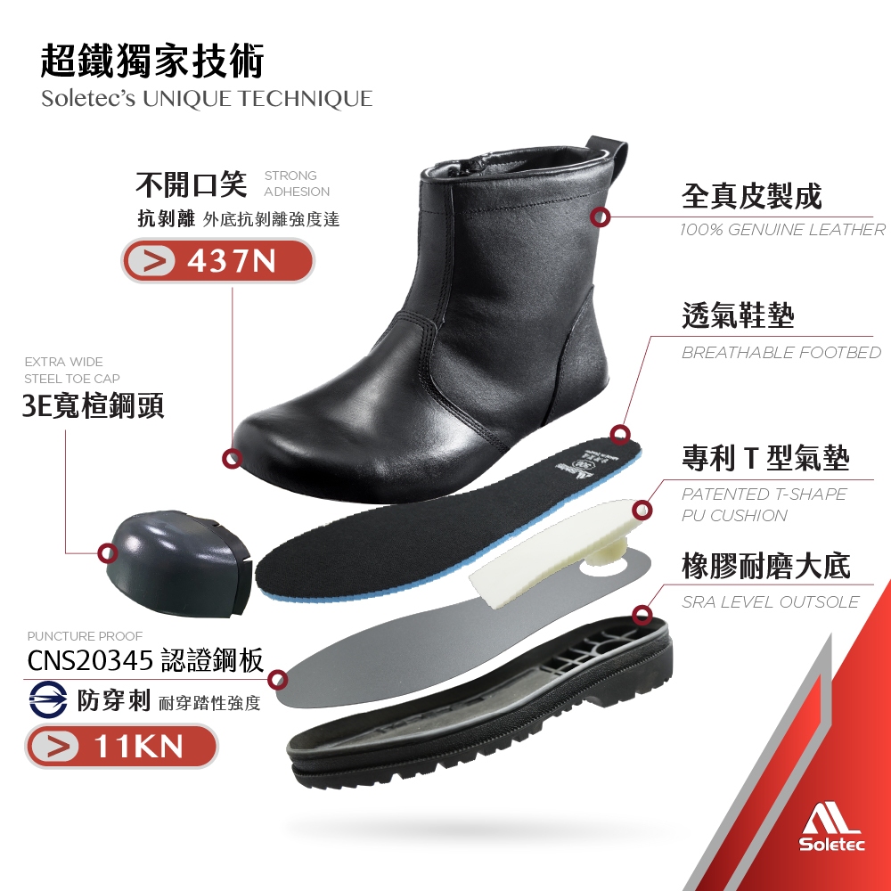 【Soletec超鐵安全鞋】E9807 氣墊電焊安全鞋 防潑水/防穿刺250/US7|255/US7.5|260/US8|265/US8.5|270/US9|280/US10|290/US11Safety BootsSoletec超鐵安全鞋-工作就該穿好鞋