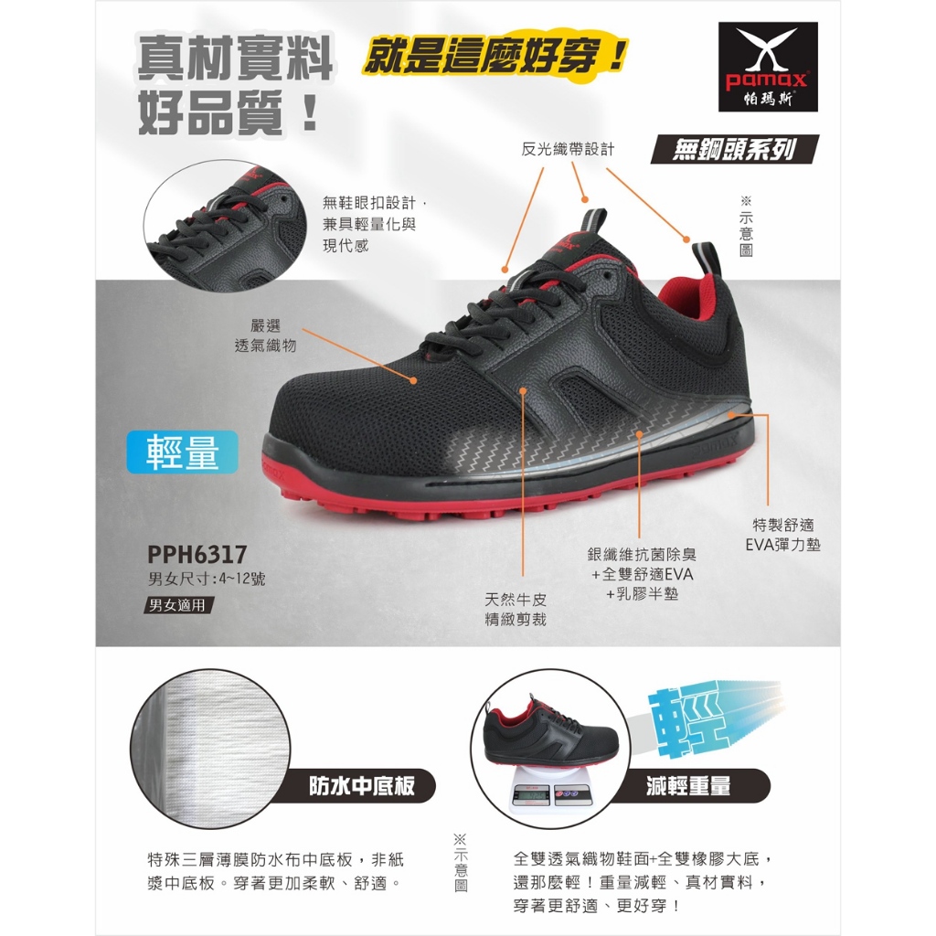 PAMAX帕瑪斯-無鋼頭/PPH6317★輕量透氣防滑機能鞋/舒適柔軟更好穿/反光織帶設計/側邊牛皮剪裁有型/男女尺寸US 7號 = 25CM|US 8號 = 26CM|US 9號 = 27CM|US 10號 = 28CM|US 11號 = 29CM|US 12號 = 30CM|US 4號 = 22CM|US 5號 = 23CM|US 6號 = 24CMSafety BootsPAMAX 帕瑪斯安全鞋