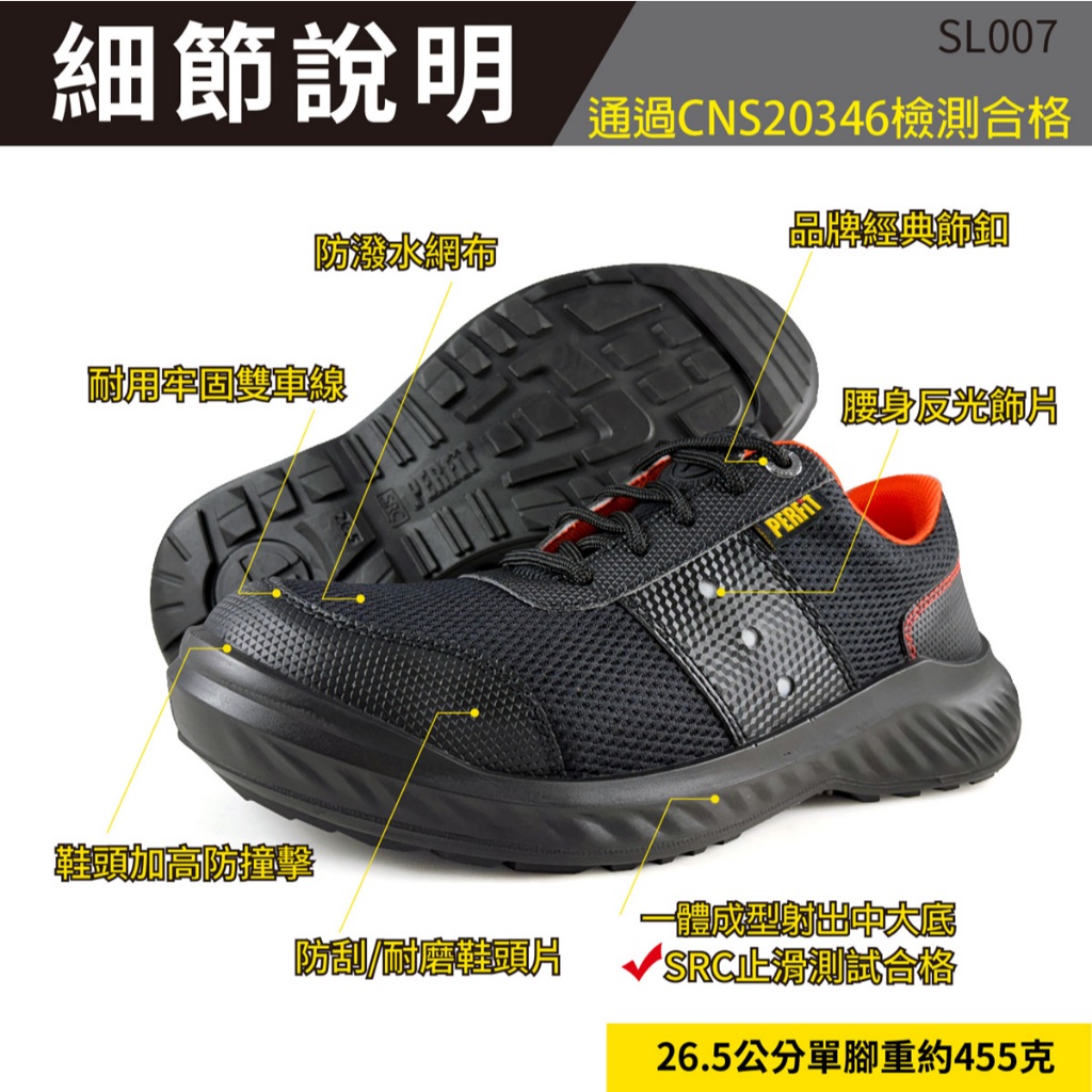 PERFiT護特【獵戶座】塑鋼頭_防潑水網布_超輕+緩震防護鞋(安全防護鞋/CNS 20346)SL00726公分|26.5公分|27公分|27.5公分|28公分Safety BootsPERFiT護特安全鞋