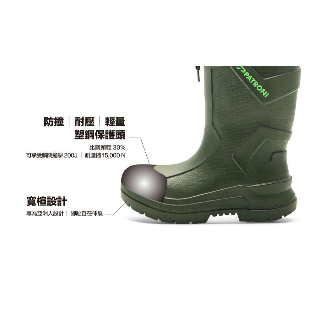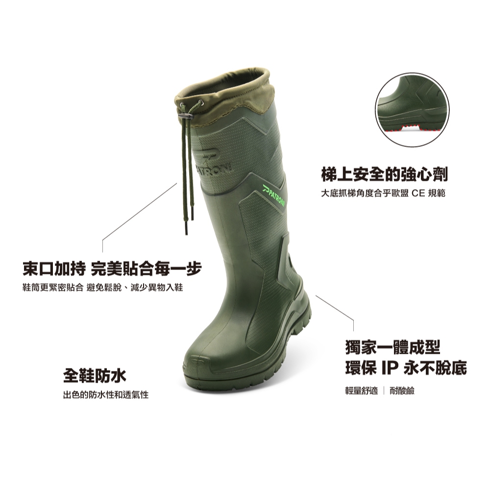 【PATRONI】極雨鞋 SF2380DGN 極輕量抓梯絕緣安全雨鞋(贈 涼感抗菌襪套乙雙)EUR37 | 23cm | USW7|EUR38 | 24cm | USW8|EUR39 | 24.5cm | US6|EUR40 | 25.5cm | US|EUR41 | 26cm | US8|EUR42 | 27cm | US9|EUR43 | 28cm | US10|EUR44 | 29cm | US11|EUR45 | 30cm | US12|EUR46 | 31cm | US13Rain BootsPATRONI 配多利|安全鞋|工作鞋