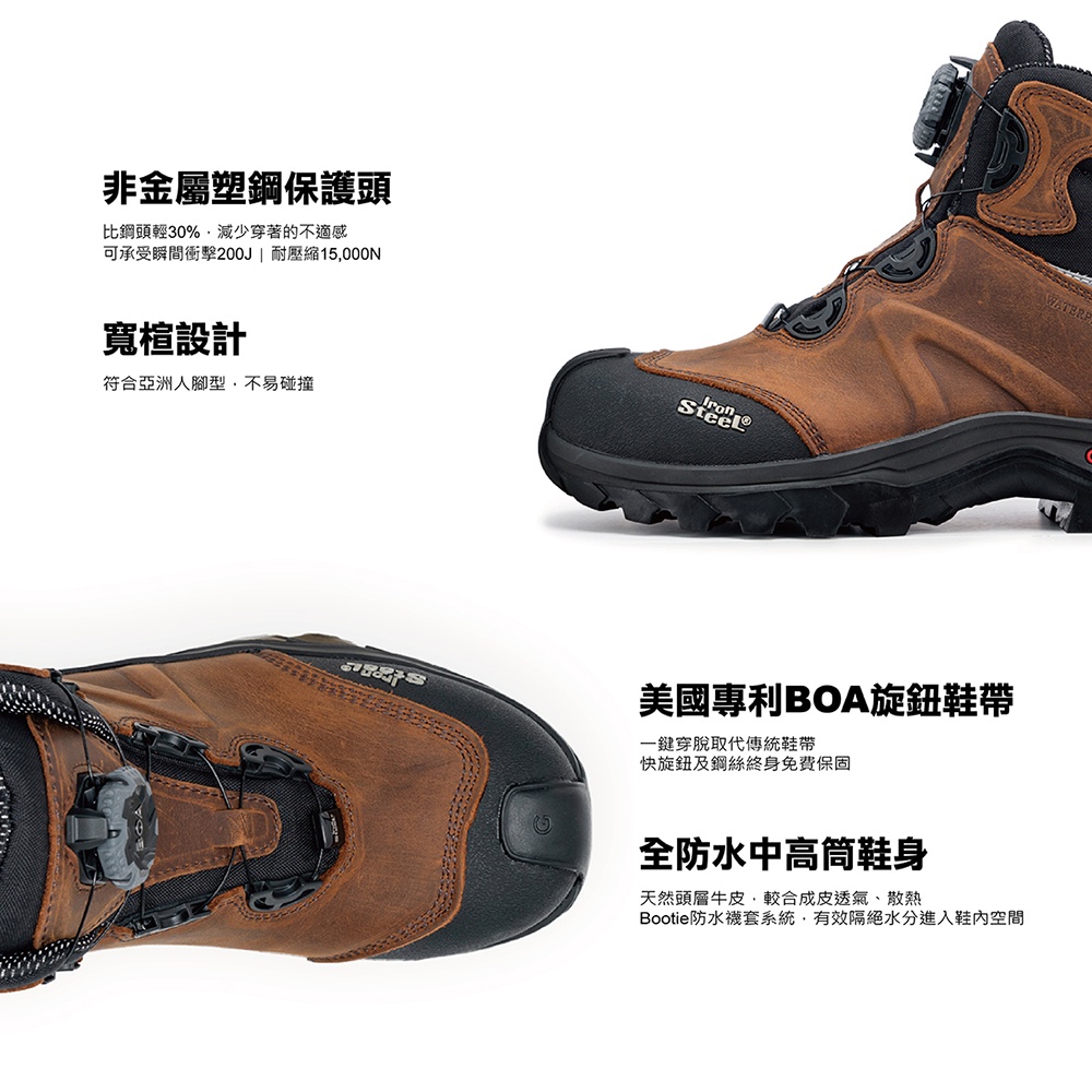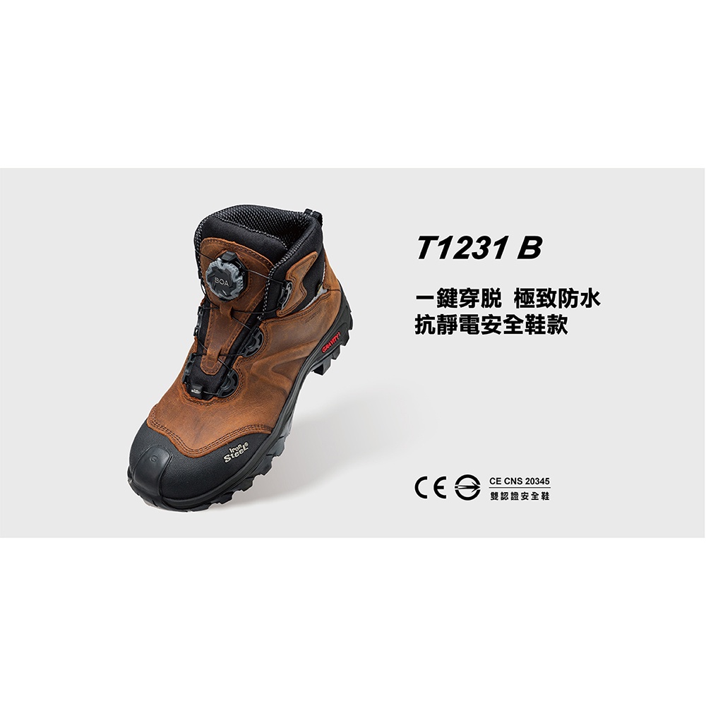 • 【IronSteel 出清特賣中2件9折】 T1231B Eagle 防水BOA快旋鈕抗靜電安全鞋