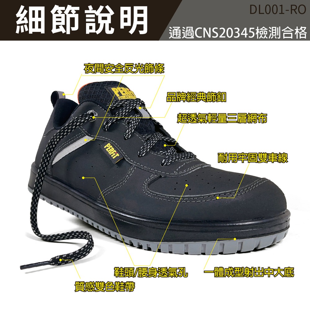 PERFiT護特【暮黑星點】輕量 緩震 真皮 休閒 板鞋款安全鞋(工作鞋/鋼頭鞋/CNS 20345認證)DL00145 (29cm)|42 (27cm)|43 (27.5cm)|44 (28cm)|40 (25.5cm)|41 (26cm)Safety BootsPERFiT護特安全鞋